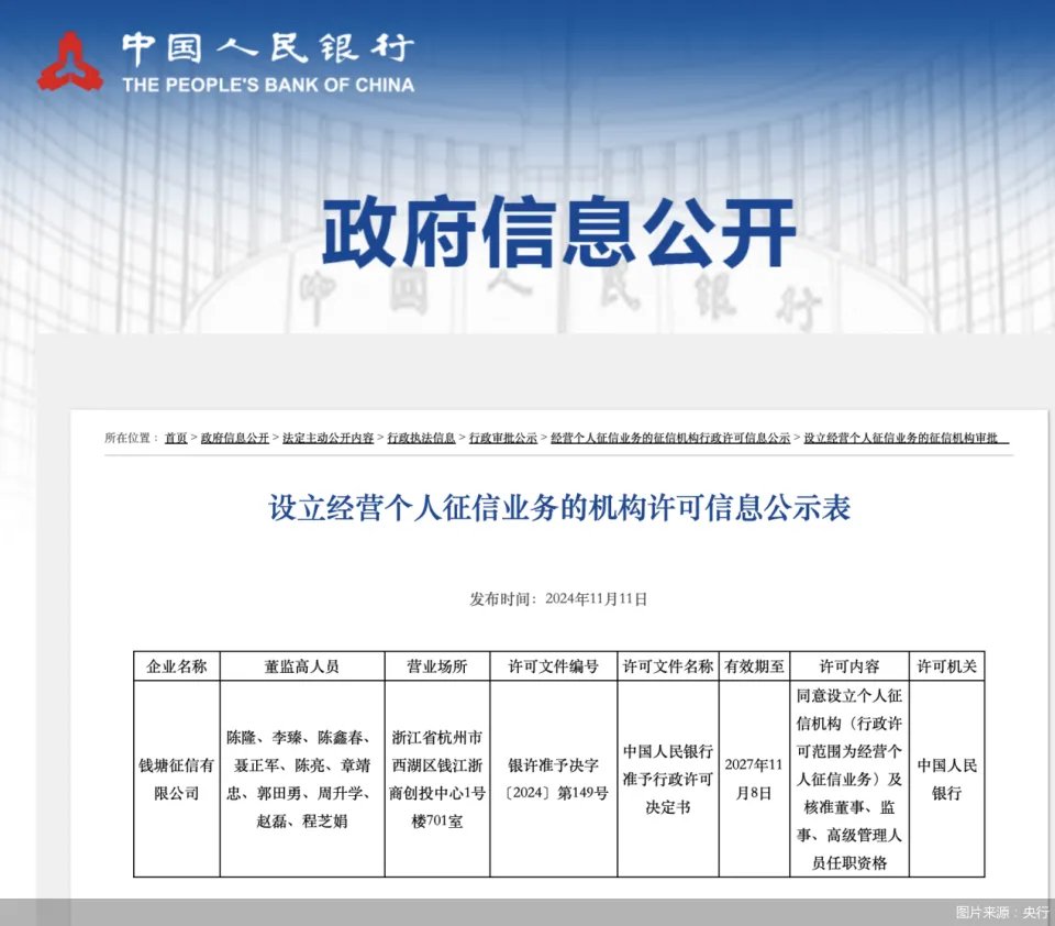 北京商报讯(记者刘四红)个人征信业务申请数年后,钱塘征信牌照终于获批。11月11日,中国人民银行发布公告称,批准钱塘征信有限公司(以下简称“钱塘征信”)个人征信业务允许。 根据信息公示表,钱塘征信的注册地为浙江省杭州市西湖区,董监高人员包罗陈隆、李臻、陈鑫春、聂正军、陈亮、章靖忠、郭田勇、周升学、赵磊、程芝娟。 由此,钱塘征信成为继百行征信、朴道征信后,第三家持牌的个人征信机构。 从股权来看,钱塘征信布局定位与此前百行征信、朴道征信极为相似,都接纳“国资+市场化机构”的双拳组合。根据人民银行此前披露,钱塘征信的紧张股东及所持股份中,浙江省旅游投资集团有限公司持股35%,蚂蚁科技集团股份有限公司持股35%,传化集团有限公司持股7%,杭州市金融投资集团有限公司持股6.5%,浙江电子口岸有限公司持股6.5%,杭州溪树企业管理合伙企业(有限合伙)持股10%。 北京商报记者注意到,这家由蚂蚁集团参股的个人征信机构一直备受关注。早在2021年11月26日,人民银行曾公告称,钱塘征信的个人征信业务申请已获受理,但以后审批效果迟迟未出。 时隔多年后终于落槌,博通咨询金融行业首席分析师王蓬博以为,这是人民银行在美满征信市场供给的体现,个人征信市场空间广阔,须要更多的服务提供方来满足市场需求;其次人民银行也要思量个人征信牌照涉及到个人隐私掩护、数据合规、羁系需求等诸多因素,特别是比年来干系立法也在增长,以是羁系对于牌照的下发审批比较审慎。 如今来看,钱塘征信的股东布局体现多元化和分散化的特点,克制了一头独大的局面。北京商报记者从钱塘征信获悉,钱塘征信股东既有国有企业,也有民营企业。各个股东的持股比例是由发起人股东按市场化原则根据各自情况同等协商后确定。如今,钱塘征信公司管理美满,已按照公司法、公司章程创建了股东会、董事会、监事会、管理层等当代公司管理布局。 颠末恒久发展,我国渐渐形成“当局+市场”双轮驱动的个人征信格局。在业内看来,“国有资源+民营资源”共同持股是三家个人征信机构的紧张股权特征,如此既能发挥当局政策上风和资源上风,同时也能确保市场化机构到场的积极性。 正如王蓬博指出,在风险可控的条件下,征信信息建立一直对峙“当局+市场”双轮驱动,钱塘征信股东布局多元,可以大概在信息安全、数据、场景及技能方面形成上风并互补,有利于行业形成良性竞争和长远发展,提振市场信心。 新机构的入场,也将增长个人征敬佩务供给。素喜智研高级研究员苏筱芮同样说到,第三家持牌个人征信机构的到来,可以大概进一步丰富个人征信市场的供给,有助于引发个人征信市场竞争活力,对构建公平竞争、有序发展的个人征信市场形成紧张助力。与此同时,钱塘征信有望扩大个人征敬佩务的覆盖范围,缓解缺少信贷记录等客群服务不敷的标题,满足个人消费者、个体工商户、小微企业主等差别客户群体多元化的征信需求。 苏筱芮以为,个人征信作为数据麋集型业务,其市场的健全将有助于数据要素的高效流转,在数字经济时代蓬勃发展的当下,可以大概进一步为实体经济发挥充分价值。 征信是金融的根本和底层业务,在金融业务必须持牌和信息断直连的要求下,个人征信牌照价值将会渐渐放大,王蓬博以为,未来随着金融行业的渐渐发展,信用的应用场景将会更加丰富和多元,也预计会有更多商业和技能模式上的创新。 据人民银行主管媒体《金融时报》,钱塘征信有关负责人表现,钱塘征信设立后,将严格按照《个人信息掩护法》《征信业管理条例》《办法》等法律法规依法开展个人征信业务,认真实行金融羁系各项要求,践行“征信为民”的发展理念,掩护好数据安全和个人隐私,在市场化法治化轨道上创新发展,助力做好“五篇大文章”。 |