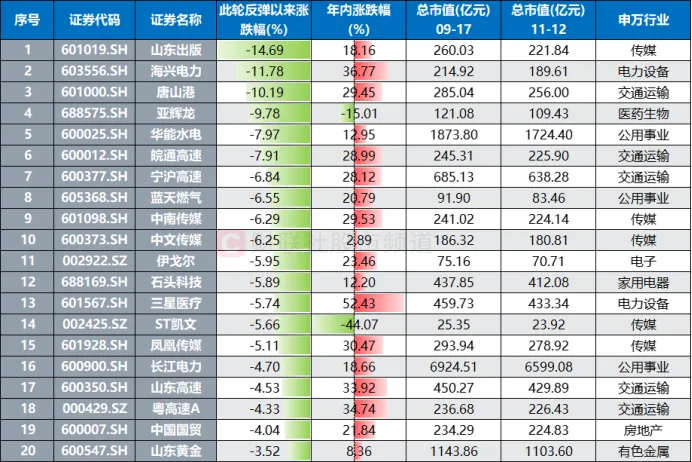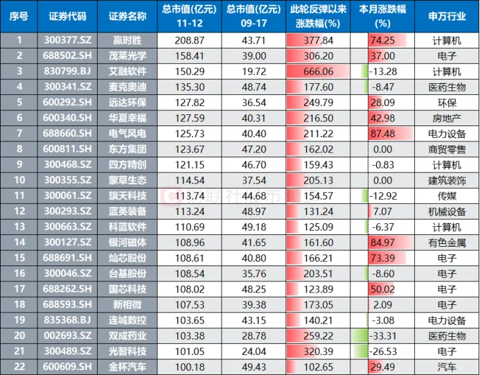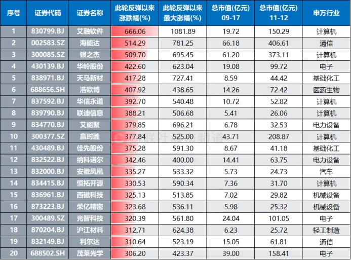 财联社11月12日讯(编辑 梓隆),自9月18日以来,市场已历经近2个月的反弹行情,克制本日(11月12日)收盘,不盘算新股情况,A股在这35个生意业务日期间平均上涨近50.9%,中位数涨幅近40.3%。此中,期间获翻倍涨幅的个股共有445只,占整个A股数量的8.3%。 六大板块年线仍跌,破净股数量降六成 受近期市场持续生动提振,告急指数均在此轮反弹行情中迎来较大修复。以9月18日至今行情统计,北证50、科创50、创业板指表现尤其亮眼,涨幅分别达126.5%、60.4%、55.7%,而红利指数、上证指数反弹幅度相对靠后。规模指数方面,中证2000、国证2000、中证1000指数表现优于权重股指数,但从整年行情上看,上证50、沪深300等大盘股指数仍涨幅居前。 注:市场告急指数此轮反弹及年内涨跌幅(克制11月12日收盘)行业(申万一级)指数方面,在此轮反弹期间,31个板块均迎来上涨行情,此中,盘算机、电子、非银金融、房地产、商贸零售为涨幅居前的五大板块,而公用奇迹、石油石化、煤炭的板块涨幅相对靠后。若从整年行情统计,如今仍有6个板块指数依旧年线收跌,分别为纺织服饰、医药生物、农林牧渔、食品饮料、轻工制造、综合板块,此中,纺织服饰板块跌幅显着。 注:行业板块指数此轮反弹及年内涨跌幅(克制11月12日收盘)别的,从市场破净股数量统计,克制本日收盘,剔除市净率为负值的公司且不盘算近期上市新股,如今仅有350只个股市盈率不敷1倍,较之9月18日时(861股)镌汰幅度靠近6成。同时,市场低价股近期数量也大幅降落,以本日收盘价统计,如今股价不敷5元的个股共659只,较之9月18日时(1284股)镌汰近48.7%,其在A股中的占比也由此前的24%降至如今的12.3%。 注:中证全指年内市净率(克制11月12日数据)60余股涨幅超2倍,部分标的逆向收跌 详细个股来看,克制本日收盘,不盘算新股情况,在此轮反弹行情中,累计共有445股涨幅翻倍,62只个股涨幅在2倍及以上。此中,艾融软件以6.66的涨幅暂居A股第一,其区间最大涨幅一度录得10.81倍,海能达、银之杰、华岭股份、天马新材、浩欧博等股也是近期的“人气标的”,其期间涨幅均在4倍以上,华信永道、联迪信息、艾能聚等股近期也表现生动。 注:此轮反弹以来涨幅居前的个股(克制11月12日收盘)受近期股价大涨影响,不少小微盘股乐成“鲤鱼跃龙门”,化身成百亿市值的大盘标的。详细数据来看,在此轮反弹行情前夕(9月17日),市场共有近3300只个股总市值不敷50亿元,而如今数量已降至2500股,累计镌汰近800股,降幅近24%,此中,22股如今总市值已超100亿元,赢时胜唯一总市值超200亿元。在这些个股中,创业板股数量较多,其占比靠近一半。 注:此轮反弹行情中总市值从不敷50亿元跃升至百亿元的个股(克制11月12日收盘)别的,从涨幅分布层级上看,在此轮反弹行情中,大部分标的告急会合在20%至60%涨幅区间,其个股数量近3500只,合计占比近65%。不过,仍有36只个股在此轮反弹行情中逆向收跌,此中,山东出书、海兴电力、唐山港3股跌幅均在一成以上,若从市值角度来看,中国石化、长江电力、华能水电、中煤能源、国投电力、山东黄金共6只千亿市值股也位列收跌股中。 注:此轮反弹行情中个股涨跌幅分布情况(克制11月12日收盘)注:此轮行情中收跌且跌幅居前的个股(克制11月12日收盘)(财联社 梓隆) |