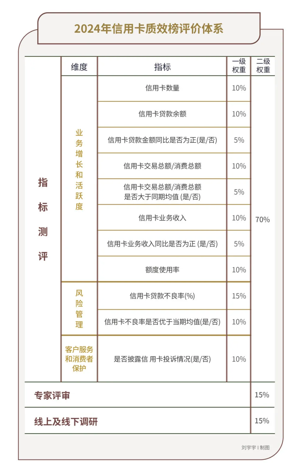 在中国内地问世近30年之际,光荣卡市场正履历前所未有的厘革。 2024年7月,“史上最严”光荣卡新规(即《关于进一步促进光荣卡业务规范康健发展的关照》结束过渡期。在此指挥棒强力指引下,又逢市场承压,各银行提质革新之风渐盛,跑马圈地转向精耕细作。 在前所未有的承压厘革中,哪些银行光荣卡业务逆市而上?它们如何精准捕捉市场需求?怎样采取科技本事力阻风险资产暴露?哪些银行更关注客户体验? 南方周末新金融研究中央曾依据2022年和2023年年报数据,对43家银行(包罗42家上市银行和系统重要性银行之一广发银行股份有限公司)进行测算和排名。先后历时半年经心制作并于2024年8月发布“2024年金标杆——光荣卡质效榜”初榜(干系文章见)。 9月开始,南方周末新金融研究中央以各银行2024年中报数据为根本对干系指标体系下的数据进行更新。与此同时,对被测评的43家银行睁开深度问卷观察、线上调研和部门机构实地走访。(干系文章见)其间,遴选干系范畴资深专家构成独立专家评审团,对干系榜单以“背靠背”情势进行独立实名评分。(干系文章见) 在上述三类分值各占肯定权重的根本上,南方周末新金融研究中央制作并公布“2024年金标杆——光荣卡质效榜”终榜。这是2024年度“金标杆—中国新金融竞争力榜”系列子榜之一。客观、科学、公正和透明是“金标杆”严酷遵照的四大原则。 优化部门评测指标在指标测评体系一项,虑及部门指标披露度有限等因素,南方周末新金融研究中央剔除了“光荣卡业务投诉占比”和“光荣卡不良率是否超出国际警戒线”等两项指标,转而以同考量维度内的其他指标作为观测对象;同时将初榜中的“光荣卡发卡量”“额度使用率”和“光荣卡生意业务及消费总额”等三项指标权重均由15%下调至10%。调解之后,总体评分逻辑仍遵照初榜存量与增量同时分身的原则,具备较强一连性。 调研部门的计分规则则与各银行对调研反馈的及时度和完备度干系。南方周末新金融研究中央以“线上+线下”调研方式对关键题目进行增补求证。此中,调研问卷的题型设计围绕如何进步存量光荣卡生动度、场景权益搭建良好做法和如何控制不良率等热门题目睁开。被调研者以案例和策略阐明的方式对干系题目进行阐述,以增补财报数据在透析复杂事及时的短缺。 专家评审环节,南方周末新金融研究中央约请9名外部评审专家对43家银行光荣卡质效方面的综合竞争力进行投票。被投票银行在此项中均有得分。 必要阐明的事项有二:在指标测评体系部门,为表现寻求行业标杆之意,各银行的指标对应得分均以最优者为参照物,因此会出现得分偏低的情况;同时,各银行总分与信息披露及调研问卷复兴的完备度干系。因此,部门银行的得分情况或与真真相况存在肯定毛病。但南方周末新金融研究中央以为,作为资源市场的重要到场者,让投资者和干系各方尽大概相识运营情况亦是上市银行和系统重要性银行的要务之一。因此“金标杆”的测算逻辑仍嘉奖信息披露充实者。 前五名股份行占三按照上述三大维度测评计分统计之后,2024年度光荣卡质效榜名次落定。 在光荣卡范畴口碑颇佳的招行以86.8分的绝对优势摘得桂冠,其与第二名建行的分值差距接近20分。 包括中信银行、广发银行和兴业银行在内的4家股份制银行均位列前十,排名依次为第三、第四和第十。别的6家被测评的股份制银行在总榜单中的排名也相对靠前,分别为第十二名、第十三名和第十五名等。 按照上述排名,股份制银行在光荣卡范畴的优势可见一斑。它们获胜的利器是什么?南方周末新金融研究中央以在指标测评、调研及专家评审环节均斩获第一的招行进行个案分析。对比发现,指标测评部门,招行在“卡数量”和“光荣卡生意业务金额”等两项反映光荣卡生动度的指标上均得满分。同时,鉴于其在调研问卷环节详细解答且极具前瞻性地解答了问卷涉及内容,调研环节亦得到15分满分。别的,专家评审团在“背靠背”打分环节为其投出了较高票数。综合此3项,招行总分在43家银行中遥遥领先。 招行在调研问卷中提及,该行对单一客户持卡数量进行上限管控,并对客户名下多个光荣卡账户额度纳入同一授信管理,严酷实行刚性扣减。现在该行光荣卡恒久睡眠卡率控制在20%以下,符合羁系要求。产物体系上,招行洞察到旅游成为住民新周期下确定性消费的增长点,积极提供旅游场景的消费服务与优惠。 除招行外,广发银行在调研问卷中关于光荣卡权益的表述亦颇具新意且符合行业发展要义。南方周末新金融研究中央因此在调研环节予以其较高赋分。广发银行在问卷中称,光荣卡权益设置是吸引消费者、加强用户忠诚度和进步用卡积极性的重要服务本事。基于此,该行于2024年推出“携号转权益”服务,冲破传统“卡产物与权益强绑定”模式带来的不敷,实打实为客户提供便利。 但亦有股份制银行排名不理想,尤以中原银活动甚,仅位列第20名。 仅两家国有行入围前五区别于2024年“金标杆”其他子榜,国有银行在2024年光荣卡质效榜中的排名略显黯淡。此榜单表现,前五名中,国有银行仅建行和农行两家,对应排名分别为第二和第五。 但农行的名次较初榜时的第二十名大幅跃升。一个极为重要的缘故原由是,该行在问卷调研环节增补了2024年中期光荣卡不良率数据,使其在