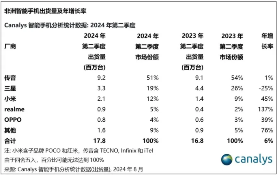 稳固多年的非洲手机市场终于迎来了松动。 第三季度,被誉为“非洲手机之王”的传音净利润暴跌41%,营收也同比下跌7%。不光如此,本年二季度,传音在非洲的市场份额已开始降落。 与传音净利润暴跌、市场份额降落相反的是:小米、OPPO在非洲的出货量增长100%和259%。 这是一个极其重要的信号。 要知道,传音在非洲已经布局近20年。2006年,当大部分人还没有手机,诺基亚照旧全球手机市场的老大,传音的竺兆江已开始在非洲做调研。厥后诺基亚手机退出市场,三星在非洲屈居第二,传音手机依附非洲市场的放量,成为全球第四大手机厂商。 客岁,传音手机的出货量和净利润分别同比上涨30%和123%。为什么环境会急转直下?迩来一年非洲手机市场又履历了哪些变革? 一、广告靠刷墙、待机一个月,在非洲,传音遥遥领先竺兆江是传音首创人,他很低调,鲜少接受采访也很少在公开场所露面,传音手机的发展也很低调。 2006年,竺兆江照旧波导手机副总裁,中国放开国外手机厂商特长机牌照后,国内手机厂商面对亘古未有的竞争压力,于是竺兆江从波导辞职,建立传音,远赴非洲开发市场。 21世纪初,小灵通的出现让手机成为大众消耗品,各大手机厂纷纷参加市场劫掠用户,当时非洲是诺基亚的天下。由于非洲人均GDP只有几百美元,大部分人还用不起手机,手机排泄率只有20%,而发达国家排泄率已超过90%。 传音的第一款手机Tecno T780是一款双卡双待手机,由于当地人风俗随身携带多张SIM卡(非洲运营商比力多跨运营商信号会变差而且资费较贵),如许两张卡可以自由切换,省去了换卡的贫苦。此款手机非常受当地人欢迎,传音渐渐在非洲站稳了脚跟。 紧接着,传音推出了首款安卓智能机Tecno T1,2013年,传音又推出了高端手机品牌Infinix与苹果、三星睁开正面竞争。 2016年,传音依附着功能机的超高占据率,逾越诺基亚和三星成为非洲市占率最高的手机厂商,2018年,传音手机在非洲的市场份额占比超过50%,过半的市占率一直保持到当下。 传音手性能够打败国际巨头,统治非洲手机市场重要有以下四个缘故起因: 第一,传音的低价策略。 无论功能机照旧智能手机,传音的手机价格比诺基亚和三星自制,传音采取农村包围都会的策略,主打三四线都会和农村,诺基亚三星则重要布局大都会,低线市场扎稳脚跟后,传音又推出高端品牌进入一线都会。 第二,举行本土化创新。 双卡双待手机之后,传音又推出了四卡四待手机,以及长续航电池,乃至一个月不消充电,尚有针对非洲人喜欢载歌载舞,传音手机具有大音量播放音乐的功能。 别的,也开发了得当黑人的手机照相功能,其他厂商拍的照片,不光照片里的脸比现实还黑,而且晚上照相只能看到两颗牙,完全看不到脸,传音的手机可以做到把脸拍成巧克力色,晚上也不消担心看不到脸。还根据当地天热人手轻易出汗,增长了防掉落、耐腐蚀,指纹解锁乐成率高等个性化创新。 第三,“广告+渠道”,打造文化认同。 传音采取最根本的刷墙广告,同时非洲人热爱足球,传音与英超曼城、莱斯特城等球队签约成为官方互助同伴,尚有当地热门歌手,以及传音复制了OPPO、VIVO的打法,有很发达的线下分销体系。 第四,传音选择的非洲市场,竞争比力小。 传音手机固然卖的价格比小米要低,但是团体毛利率高于小米,好比2023年传音毛利率和净利率,分别是24.5%和9%,小米的分别只有21.5%和6.5%(手机业务毛利率更低)。在同价位设置上比不上红米,但是在非洲通过本土化创新在深耕多年,消耗者乐意为其特色功能买单,以是毛利率高于小米。 二、小米华为们扎堆非洲,翻倍式增长成常态然而在本年,传音稳固的市场正在被中国对手们蚕食。 IDC数据,本年一季度,非洲智能手机出货量2020万台,同比增长17.9%,同期功能机出货量跌至1880万台,同比下跌15.9%,智能手机出货量初次逾越功能机。 在非洲,智能机期间沉寂到来。 2023年,传音在非洲卖了3450万部手机,份额占比54%,排名第一,从2024年第二季度起,传音的市场份额已降至51%,固然仍然排第一,但传音的市场份额正在被蚕食。 本年二季度,小米的智能手机市场份额从客岁的11%增长至12%,2022年,小米份额还只有6%。客岁,在非洲最大手机市场尼日利亚,小米份额已达19%,成为仅次于传音的第二大手机品牌。本年二季度,OPPO在非洲的市场份额也达5%,OPPO子品牌Realme的出货量增长137%。 华为手机固然没有进入前五,但Canalys数据表现,客岁四序度华为手机销量大幅增长371%。 小米、OPPO等手机厂商大肆进入非洲,用的也是低价策略,主攻中低端市场。Canalys高级研究员表示:“本年上半年,100 美元以下的细分市场增长率达到42%。” 小米更注意技能发烧和性价比,以热卖的红米10A和红米12C为例,其售价仅为75美元和95美元,价格均低于100美元,尚有大容量电池。 OPPO也是主打的性价比,以其照相性能见长。 相比于传音、小米、OPPO,三星则更加器重中高端市场,在中国手机厂商的围剿下,三星份额出现降落。本年二季度,Canalys统计,三星在非洲的市场份额跌至19%,乃至手机出货量较客岁同期下跌25%。 别的,VIVO也已公布进入非洲市场,光彩手机也计划于近期进军非洲市场。巨头们进入非洲市场后,非洲手机市场竞争将会更猛烈。 三、传音生态遍布非洲,城池不会失守,但防御会更难不能否认,传音正面对着中国企业更猛烈的竞争,但在非洲的市场职位,短期内仍然难以撼动。 在非洲