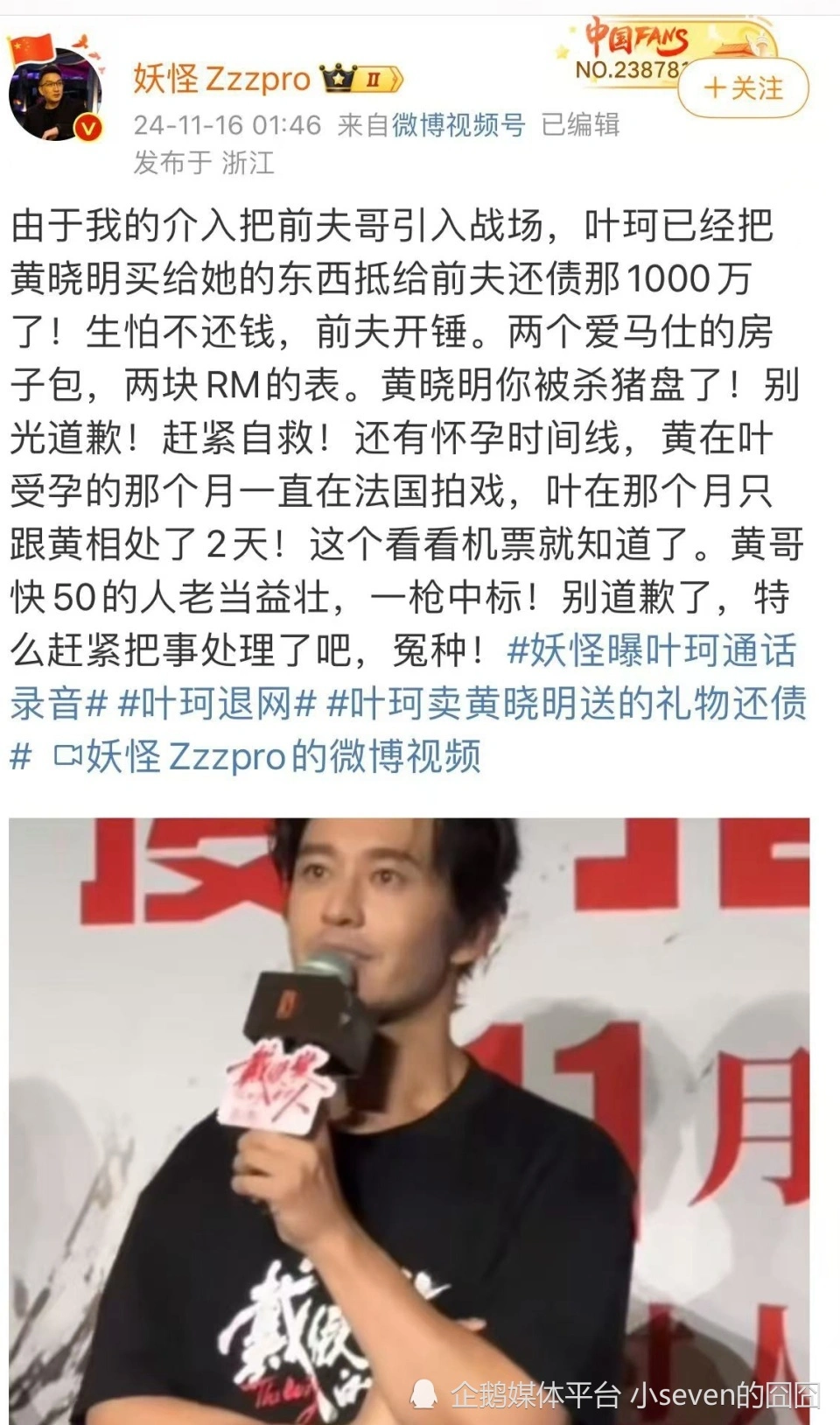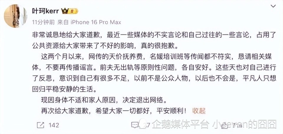 黄晓明因为叶珂真的是受到了太多的委曲了,自从官宣了叶珂之后,网友们对于他的讽刺就从来没有停过,这一点哪怕当年的杨颖都没能做到。对此各人只能感慨叶珂着实是太招黑了。没想到的是,克日黄晓明又一次回应关于叶珂的消息了。 黄晓明鞠躬为叶珂道歉,本人情绪很低落 11月15日,黄晓明到场自己的新电影《戴假发的人》的首映礼,而在这一次的首映礼中,黄晓明也正式为这段时间自己感情方面的问题所遭遇的争议的而道歉。不得不说,黄晓明的情商是真的是高,明显就不是他的问题,但他却道歉了。 黄晓明表现自己很抱歉,但却没办法。这点确实,究竟叶珂怀了黄晓明的孩子,黄晓明也不大概在这个节骨眼上抛弃叶珂,否则名声估计就更差了!而黄晓明表现自己会处置处罚好私事,然后拍出更多的好作品出现给各人。末了黄晓明还鞠躬说对不起了。 黄晓明在台上道歉的态度十分诚实,整个人呈90度鞠躬,而且保持了很长的时间,对于他的选择导演和其他工作职员都选择了支持。直到观众们都让他起来后,黄晓明这才被拉了起来。作为一个一线明星,黄晓明如许的态度着实让人敬佩。 黄晓明可以或许红这么多年,不是没有原理的。而当黄晓明鞠躬完站起来的时间,整个人看起来也心情很低落,应该是这段时间因为叶珂被很多网友诅咒,这让他很难熬。确实,前段时间黄晓明就曾在某个运动中自嘲自己成了一个笑话。 叶珂这阵子真的是全网都在反抗,固然公布了退网,可网络上关于她的消息却从来没有少过。前几日叶珂在闺蜜的陪同下去产检还引发了热议,因为这一次产检黄晓明并没有陪同引发了不少网友的热议,就是不知道黄晓明叶珂这段时间感情有没有出问题。 叶珂又被曝光新黑料,黄晓明被讽刺为冤种 不过也有网友以为叶珂退网仅仅只是在避风头而已,究竟近来叶珂名声着实太差,连她的店肆买卖都受到了很大的影响,钱也没赚到多少,并没有捉住这波热度。不过在怀了黄晓明的孩子之后,网友们以为叶珂也不须要为款子而烦恼了。 至少在对待自己未出生的孩子方面黄晓明应该是大方的,据说现在叶珂住在上海豪宅养胎,每个月单单是租金都须要12万,寻常配有司机和保姆。叶珂这一次算是真的母凭子贵上位了。不过比力让人惊奇的是,男方还赔给了女方不少钱。 根据网络上的爆料,叶珂和黄晓明在之前曾闹过抵牾,缘故原由则是女方的店肆业务额因为舆论一降再降,而叶珂则要求黄晓明赔偿她这笔丧失。而黄晓明则要求叶珂退网,不要再经营店肆,同意的话就给钱,为此黄晓明给了叶珂不少钱。 离谱的是,明显舆论这么差是叶珂的问题,可叶珂却要黄晓明给赔偿,网友们也是真的无语了。这要不是叶珂怀了黄晓明的孩子,估计叶珂也不敢如许无理取闹吧、而根据网红“妖怪”的说法,叶珂在和黄晓明爱情期间从黄晓明身上获得了2000多万元。 “妖怪”还爆料叶珂从黄晓明身上获取的钱有一部门用于给前夫抵债了,并根据叶珂有身的时间线暗示着是叶珂的算计。末了“妖怪”还劝黄晓明别忙着道歉了,赶紧把事变处置处罚一下,还称黄晓明为冤种。倘若真如“妖怪”所爆料,那黄晓明白实成冤种了! 当然,黄晓明怎么选择都是他自己的私事,盼望未来他可以或许处置处罚好关于叶珂的事变。不知道小同伴们以为叶珂终极能不能成为黄夫人呢? |