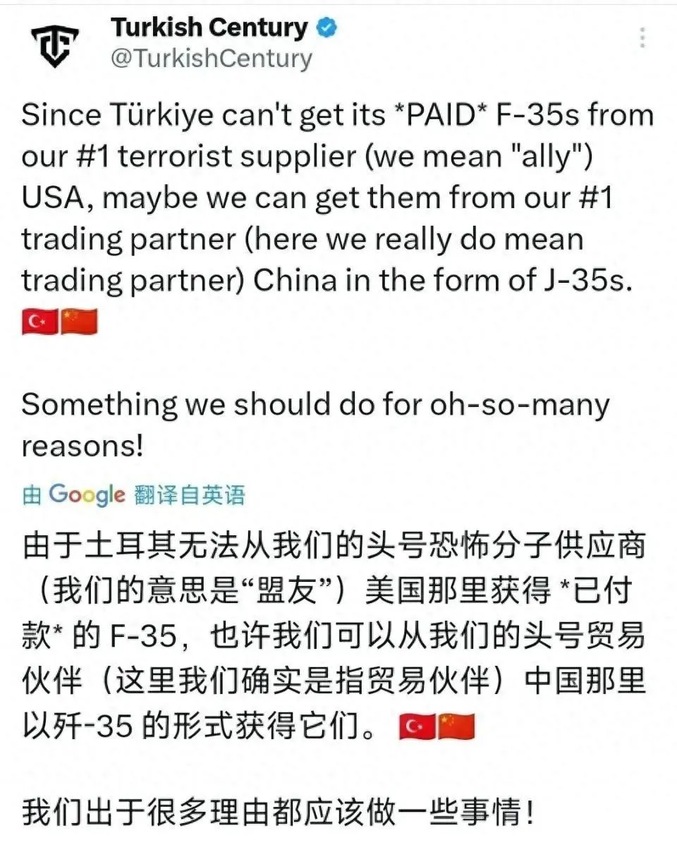 土耳其,作为北约成员国,向来依赖西方国家的武器体系,尤其是美国的战斗机。 然而,比年来土耳其与美国的军事互助关系经历了显着颠簸,尤其是在F-35项目中的遭遇,使得土耳其的武器采购选择进入了一个全新的阶段。 与美国的战略缝隙,迫使土耳其开始寻求多元化的军事互助,甚至将眼光投向了中国。 中国的歼-35A隐身战机,依附其先辈的隐身技能和多任务作战能力,成为土耳其军事需求中一个不可忽视的选择。 土耳其对这一新型战机的爱好,反映出其在面对国际政治压力和军事自主需求时的战略转向。那么,土耳其为何会在此时对歼-35A体现出浓厚爱好? 在已往的几十年里,土耳其一直是美国F-35隐身战机项目标告急互助同伴之一。 作为北约成员国,土耳其的军事现代化离不开与美国的互助,尤其是在战斗机范畴。 然而,随着美国战略重心的转移,加之土耳其选择采购俄罗斯S-400防空导弹体系,土美两国的关系经历了显着的转变。 美国以“安全风险”为由,果断要求土耳其退出F-35项目,并对着实施了一系列制裁。 这一事故对土耳其来说是一次巨大的交际挫败。 土耳其不光失去了到场F-35项目标机会,还未能如愿吸收本身已经付出了14亿美元的F-35战机,这种局面让土耳其深感不满。 在此配景下,土耳其对新型战机的需求愈加急迫,特殊是必要一种可以大概与美国及其盟友竞争的战斗机。 由此,中国的歼-35A隐身战机引起了土耳其的高度关注。 歼-35A作为中国航空工业的最新效果,拥有天下领先的隐身性能和强大的作战能力。 其隐身计划涵盖了光学、雷达、红外线等多个层面,使其在现代空战中具备了极强的生存能力。 相比于F-35,歼-35A的隐身性能更加精彩,可以大概在对抗敌方雷达时体现出极高的隐蔽性。 更告急的是,歼-35A不光具有制空作战能力,还能在多任务作战中显现出灵活的应用。 它可以实验对空、对海以及对地的打击任务,具备高度的战略灵活性。 而且,这种多任务的作战能力使得歼-35A在未来的战场上可以大概形成更为立体和全面的打击体系,这正是土耳其所必要的。 土耳其的爱好不光仅停顿在歼-35A的先辈性能上,更深层次的缘故原由在于其复杂的战略情况和对自主国防能力的渴望。 一直以来,土耳其在军事上依赖西方国家,尤其是美国的技能和武器体系。 然而,随着与美国关系的告急,土耳其愈加意识到依赖单一泉源的风险。 特殊是在F-35项目中的扫兴经历,使得土耳其对其他国家的军事技能产生了新的爱好。 土耳其对第五代战斗机的需求早已不问可知,尤其是在其与美国的军事互助受阻后。 土耳其的工业和科技部部长穆斯塔法·瓦兰克曾公开表现,土方不清除从俄罗斯采购苏-35和苏-57战斗机的大概性。 苏-57战斗机,作为俄罗斯的第五代隐身战斗机,拥有强大的隐身性能和高机动性,成为土耳其潜在的选择之一。 然而,土耳其的真正目标好像并不光仅是采购外国战机,而是发展本国的第五代战斗机——TF-X。 土耳其与英国的罗罗和BAE公司以及巴基斯坦的互助,表明土方在积极引进外国技能的同时,也在积极研发属于本身的新型战机。 美国媒体指出,土耳其通过与巴基斯坦的关系,大概正寻求借此接触中国的一些军事技能,这也进一步体现出了土耳其在军事自主性上的渴求。 土耳其位于欧亚交界处,是环球最告急的战略要地之一,其对先辈武器的需求不光仅是为了提拔军力,更是为了在复杂的国际局面中维护本身的独立性与安全性。 在美国和俄罗斯的博弈中,土耳其渴望通过多元化的军事采购战略,淘汰对任何一方的过分依赖,而中国的歼-35A无疑提供了一个极具吸引力的选择,所以土耳其媒体对歼-35A赞赏有加。 土耳其必要一款可以大概顺应多变作战情况、同时具备极强隐身能力的战机,歼-35A正是符合这一需求的抱负选择。