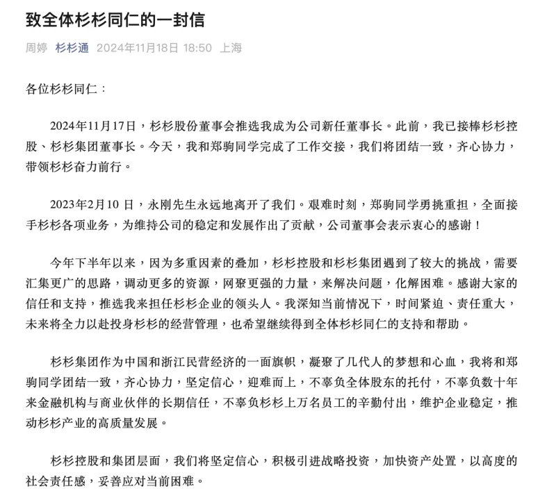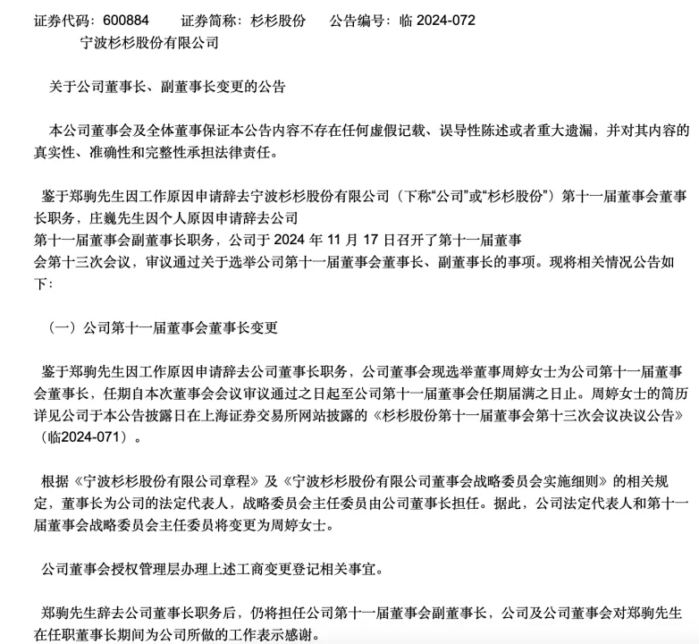 撰文 / 周 洲编辑 / 黄大路设计 / 赵昊然11月20日,刚上任的杉杉股份新董事长周婷,在上海临港杉杉科技新总部,调研杉杉负极质料的技能研发和技能储备环境。 全球最大的负极质料和偏光片公司近两年的权门恩怨,出现反转。 11月18日晚间,杉杉股份(600884.SH)突发公告称,公司董事长郑驹拟辞任,董事会推举董事周婷为新任董事长,任期至第十一届董事会任期届满。 同时,董事会推举董事郑驹为新任副董事长,任期同上。副董事长庄巍拟辞任,仍担任公司第十一届董事会董事。 至此,自杉杉控股董事局主席、杉杉股份董事长郑永刚2023年2月去世后,围绕团体话事人之争长达21个月的权门恩怨,有了新效果:郑永刚和前妻所生的宗子郑驹让位于80后继母、郑永刚遗孀、前财经节目主持人周婷。 杉杉团体突然“变天”,或与业绩断崖式下跌有关。 净利润7个季度连降,遭遇财政逆境,被上交所转达品评,股权被司法冻结和轮候冻结……郑驹在继承父业后,没能让杉杉股份稳健向好,反而滑向伤害的田地。 11月18日,周婷在杉杉团体微信公号上发布了《致全体杉杉同仁的一封信》,称杉杉控股和团体层面,将“刚强信心,积极引进战略投资,加快资产处理,以高度的社会责任感,妥善应对当前困难。” 11月19日,杉杉股份上涨7.33%,每股收盘价为10.1元;11月20日,股价下跌2.87%,每股收盘价为9.81元;11月21日,股价微跌0.31%,每股收盘价为9.78元。 周婷可否力挽狂澜,实现股民们盼望的“这周涨婷”?这有可能还不是大了局。 杉杉团体面对着百亿债务,累计被冻结、标记的股票已经高出八成。假如被冻结的股份被司法拍卖,这家市值221亿元的“负极一哥”控制权仍有可能生变。 停止发稿,汽车商业评论就该公司董事长人变乱动缘故起因致电杉杉股份证券部,被告知公司没有应披露未披露的信息,具体事宜参考公告。 首创人不测病逝电视剧里的权门恩怨商战剧情,在杉杉团体成为现实。 2023年2月12日,杉杉股份发布公告称,公司现实控制人、董事长兼法定代表人郑永刚因突发心脏疾病救治无效,于2023年2月10日与世长辞,享年65岁。 围绕着谁将成为这个锂电池负极质料和偏光片帝国的继承者,郑永刚的90后宗子郑驹和80后遗孀周婷,睁开比武。 公告简历表现,郑驹,男,1991年出生,清华大学五道口金融学院金融EMBA在读,任杉杉控股有限公司董事长兼总裁、杉杉团体有限公司董事,宁波杉杉股份有限公司董事。 周婷,女,1982年出生,拥有浙江大学和长江商学院EMBA双硕士学位,曾任上海市青联委员、浙江卫视、东方卫视消息部记者、主播,第一财经团体电视消息部记者、主播、《两会笛声》系列制片人(即前着名财经主播慰笛),现任宁波杉杉股份有限公司董事。 3月25日,杉杉股份发布公告称3月23日召开第十届董事会第四十次集会,审议通过了《关于推举郑驹先生为公司第十届董事会董事长的议案》。 据《国际金融报》报道,3月23日当天周婷出如今集会现场,并指称该次股东大会是违规和错误的。杉杉股份相干人士回应称,本次推举不存在相干报道指称的违规和错误,是合法有用的。 3月26日,杉杉股份又发布公告,称郑驹出任董事长的步调符合相干法律法规和公司章程的相干规定,此次推举合法有用。 5月6日,有媒体报道称周婷及三后代告状郑驹,要求冻结郑永刚名下所持的宁波青刚投资有限公司(下称宁波青刚)51%股份。 不久,周婷和郑驹公布息争,周婷撤回冻结股份的申请。 5月10日,杉杉股份召开2022年年度股东大会。郑驹和周婷都当选为新一届董事会非独立董事。 据财联社报道,在当日的股东大会现场,郑驹表现,“对于股权题目,已和周婷女士达成划一,两边将共同积极,推动企业新一轮发展。”周婷则表现,“两边在创建正常沟通渠道的底子上,达成了根本共识。” 据《国际金融报》报道,自郑驹出任杉杉股份董事长以来,对于上市公司的重大决议,作为非独立董事的周婷都投了同意票。 跨界之王在一众跨界造电池的企业中,杉杉股份是最早的纺织服装跨界之王,也是为数不多的跨界乐成的企业。 杉杉股份在大转型之前,有个家喻户晓的名字:杉杉服饰,该品牌由1958年出生的郑永刚建立于1989年,公司成立于1992年,曾连续7年占据中国服装市场份额第一,1996年1月在上交所上市,是中国服装第一股。 20世纪90年代末,郑永刚判断,竞争猛烈的国内品牌和即将涌入的外资品牌,会将中国的服装灵敏由卖方市场变为买方市场。 他思量转型。彼时的锂电还处在起步阶段。 1999年3月,在一个饭局上,郑永刚认为席间鞍山热能研究院某领导提及的锂离子电池负极质料课题是第二曲线的时机。同年,他将杉杉团体总部搬至上海,成立上海杉杉科技有限公司,亲任董事长。 杉杉团体与鞍山热能研究院在一年多时间内,完成了年产200吨负极质料项目的设计、施工、安装和调试,并于2001年正式投产,闭幕了日企对负极质料的把持。 随即,杉杉科技成为国内最大、全球第三的负极质料生产商。 2003年,杉杉团体和中南大学共同建立湖南杉杉能源科技有限公司,研发技能难度更大的锂电池正极质料,后该公司2021年8月被巴斯夫控股51%,更名为巴斯夫杉杉电池质料有限公司。 2007年,杉杉股份依附着性价比上风成为苹果供应商,郑永刚也在这一年辞任董事长职务。 2013年,杉杉股份的锂电收入全面高出服装业务,2020年正负极质料业务加起来占总营收的近八成