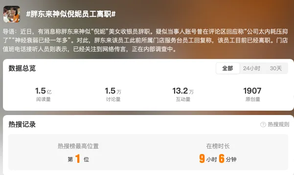 已往很长一段时间,胖东来不但是超市圈的头部,更是危急公关圈的顶流!已经被很多媒体和自媒体捧上了天! 大叔讲得再“非常”点,胖东来“使用”了每一次危急,通过超预期的现实举措和对员工超预期的关爱,借助抖音、微博等交际媒体平台,塑造了一家有口碑的公众企业形象! 好比,本年上半年,因擀面皮被曝食安问题,胖东来直接每个顾客赔1000块,给曝光人夸奖10万。 固然开除了干系员工,但于东来又说,辞退的主管1999年就到胖东来上班: