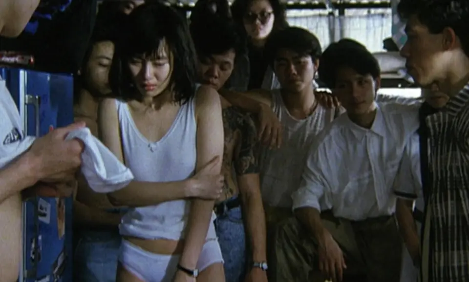 影视剧中的童年阴影一样平常分为两种。 一种是可怕类。 比如《山村老尸》、《咒乐园》、《午夜凶铃》,这些电影小时间看过后都会度过一个难眠的夜晚,膀胱也变大了几分。 而另一种我取名叫“梦碎类”。 指那些银幕中的优美形象被打碎,对年幼的心灵造成巨大创伤的情节。 比如《神雕侠侣》中小龙女和尹志平这一段,只管我其时不知道作甚爱情,但看到女神被坏人密切,就不由得攥紧了拳头。 而同时尚有《古惑仔》中的小结巴,《风云》中的楚楚.... 如今回想起来照旧心有余悸。 而本日,得哥就带各人再回想一部童年梦碎系列电影,小时间看到这一幕时,我乃至体会到了“心绞痛”的感觉。 ——《学校风云》 《学校风云》是林岭东“风云系列”的第三部,也是真正意义上的最终章,同样也是他在新艺城末了一部电影。 一部《龙虎风云》让林岭东从小小的助理制片到金像奖导演,不光在新艺城站稳了脚跟,更是开启了本身的风云期间。 然而来的快去的也快。 《龙虎风云》《监狱风云》之后,到《学校风云》后林岭东就出走新艺城,并表现本身不会再拍这个范例了。 为啥呢? 力道太猛,连其时的香港人都继承不了。 “阿朱”(袁洁莹饰)是香港的一名私立高中的门生,但这个学校毗连九龙城寨,显然不是什么好学校。 门生不学无术拉帮结派,连老师也都是乘虚而入,有的懒政一刀切,晤面只会罚誊录,有的干脆在讲堂上与门生互换赌马心得。 放眼整个学校,也只有“温老师”(刘松仁饰)心怀理想,盼望把门生们带入正轨。 但一个人的气力是有限的。 这天,阿朱被朋侪告知有一个社会小混混“刀疤哥”在追求她。 而阿朱温柔善良,就连在学校都是乖乖女,更遑论与混混随波逐流。 怎料刚走出学校就被其他同砚的搭讪,这一幕恰好被刀疤哥看到,随即大打脱手,在陌头竟然挥刀互砍。 末了杀红了眼,这名门生在追逐刀疤哥的过程中被撞倒,一命呜呼。 发生了命案,但警察(林正英饰)必要眼见证人才能确治罪责。 然而另一头,刀疤哥的老大“潇洒哥”(张耀扬饰)听到消息后,立马派部下威胁阿朱,不让她出庭作证,而同时警局又叫来阿朱,告诉她大胆指证,肯定会掩护她的安全。 阿朱信了,她站出来指认了凶手。 可换来的却不是警察允许的安全,反而是潇洒哥屡屡骚扰,乃至在学校门口当着全部人的面儿掳走了阿朱,将她带到了码头。 在一群大男子的注视下,脱光了衣服.... 当然,潇洒哥并没有沾染阿朱。 门生身份是社会赋予未成年的护身符,而脱掉校服的目的,就是为了击溃阿朱的生理防线,剥离她的社会身份,为下一步埋下草蛇灰线。 由于阿朱的指认,导致潇洒哥花掉2万状师费,而这笔账自然算到阿朱身上。 阿朱离开码头后,身心大恸,朋侪又来安慰她,带着她去舞厅散心,创伤作祟下竟然对刀疤哥有了好感,一来二去两个人就确定了爱情关系。 阿朱跟着刀疤同居,鬼混,乃至陪同他一起卖面粉,生活发生了天翻地覆的变革。 而另一头,阿朱的朋侪却由于男友的叛逆,生理瓦解在深夜驱车狂奔,最终迎头撞上大车命丧当场。 先后履历了侮辱、叛逆、朋侪的殒命,阿朱开始对这个世界产生猜疑。 她不再信赖什么公理道义,什么舍己为人,乃至劈面反驳了一直爱戴的温老师,在讲堂上夺门而去,一把火烧了学校.... “我不要读书了!我以后都不要读书了!” 这一刻,阿朱十多年的世界观瞬间崩塌了。 她不知道什么是对的什么是错的,也不知道本身该何去何从。 纵火案发生后,阿朱在刀疤的指示下躲在码头生活,但欠款还没结清,潇洒哥自然不会罢手。 这天,潇洒哥找到刀疤催债,阿朱为了尽快离开苦难,一咬牙,狠心上了潇洒哥的车,开始了昼伏夜出的应召生活..... 就如许,一个不谙世事的校园乖乖女,变成了放浪形骸的风月女郎。 女儿失落,父亲肯定着急,终于在某天得到了女儿的线索。 等父亲和警察来到所在后,才发现可爱善良的女儿早就成了他人床上之物。 父亲瓦解了。 他大闹现场,与混混缠斗在一起,而后混混追出门,在街大将父亲砍死,局面甚是骇人。 固然混混是潇洒哥部下,但这刀并不是潇洒哥砍的,状师简单处理后,潇洒哥就走出了警局。 而面对毁掉本身身材,生活,父亲的凶手,已经在陌头浸淫多年的阿朱终于知道本身该做什么了。 她举起刀抽向了潇洒哥,却被挡下,刀疤哥为了阿朱自告奋勇,两人在舞厅杀红了眼。 但双刀难敌四手,末了他们在潇洒哥追逐下来到了阿朱的学校。 就在潇洒哥即将对阿朱施暴时,赶来的温老师一刀切下了潇洒哥的左手,连捅腹部数刀,而后警察补枪一鼓作气将他推下了楼.... 极致的社会讽刺如今再谈起这部电影,我想许多人挥之不去的就是袁洁莹。 她应该是《开心鬼放暑假》中最令人深刻的演员,形状出挑性格活泼,爱恨分明鬼马精灵。 然而到了这部电影就忽然成了任人鱼肉的金丝雀,被一群豺狼豺狼分而食之,末了乃至甘愿成为他人胯下玩物。 是问这滋味儿谁受得了? 可袁洁莹的脚色只是表象,多年后再看这部电影,发现更可怕的在于文本。 本片主线剧情很简单,无非就是平凡女孩被黑社会荼毒的故事,但它所出现出来的社会状态却让人不寒而栗。 混混在街上横行霸道,目无法纪。 警察窝窝囊囊,抓小贩时雷厉风行,但黑帮大佬犯事被抓到也不敢处理。 学校里的管理人员都是尸位素餐,向导层乃至与混混接壤。 这种深深的不安感弥漫了整部电