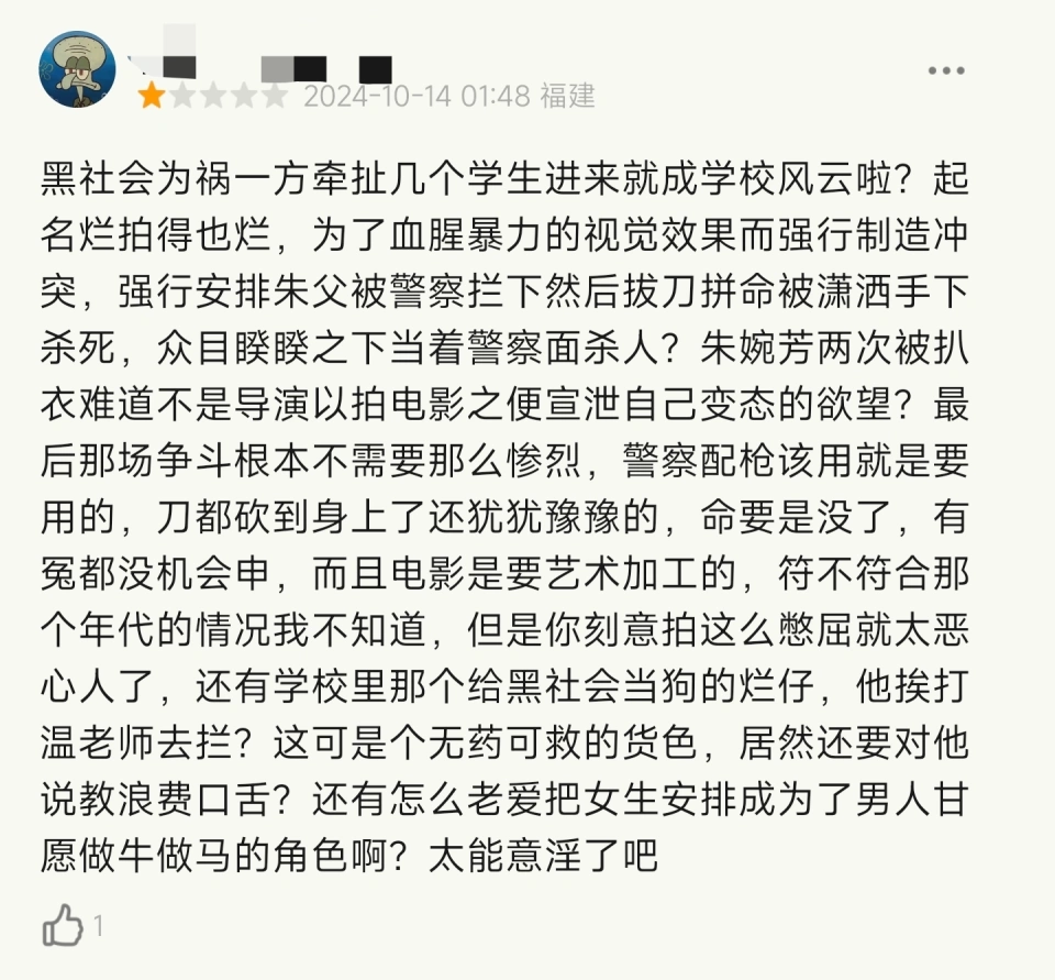 而我们如今再看的版本,也是电检处修改过的上映版本,倘如果原版,那故事中被隐去细节就会更多,更暴力,也更是童年阴影。 比如阿朱与潇洒哥的关系,台词中一笔带过,显然是剪掉了,真要拍出来不知道有多猛。 而其时也没盛行什么“导演剪辑版”,这36刀到底剪了啥,咱也不知道了。 只知道由于没有大明星助阵,《学校风云》这部电影在当年只拿到了1373万票房。 票房成绩不可,上映后更是有不少校工、教诲工作者给林岭东写信,以为他的电影道德败坏,缺乏社会知己。 林岭东只能回应—— “我只是把我的所见所闻拍下来了,我已经很收敛,只拍了6、7成而已。” 票房触礁,口碑也不咋地,不外还算有点收获。 因不懂得收力,张耀扬一巴掌把李丽蕊的鼻梁骨打断,效果两人却因戏生情,谈了一场三年的爱情。 而李丽蕊有了男友,又靠此片拿下了第七届金像奖最佳女配,可谓是财色兼收。 痛惜林岭东。 这部电影让他意气消沉,自此之后就离开了新艺城,探求另一片天地去了。 ——全文完。 |