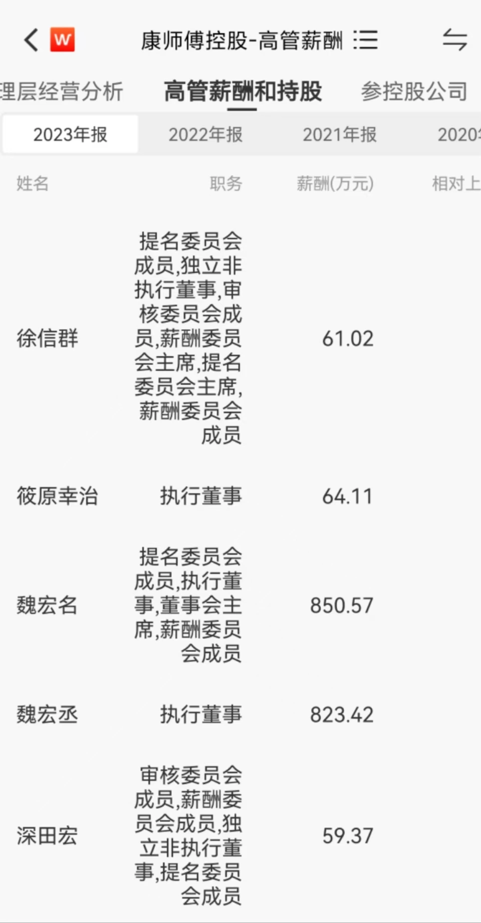 瑞财经 王敏近日,康师傅控股(00322)发布2024年上半年财报。 2024年上半年,康师傅控股业务收入412.01亿元,同比增长0.7%;公司股东应占溢利18.85亿元,同比增长15.1%。 按业务细分,康师傅方便面收入为138.14亿元,受市场承压与产物布局调整关系,同比下滑1.0%;饮品收入为270.65亿元,同比增长1.7%。 别的,停止2024年6月30日,康师傅控股员工人数为64797人,较2023年末的66807人镌汰了2010名员工。 公开资料表现,康师傅归属于台湾母公司顶新团体,由魏氏家属魏应州、魏应交、魏应充、魏应行四兄弟创立。此中,魏应州负责大陆事件,紧张有EX与康师傅。 2018年12月,康师傅控股宣布,首创人魏应州将于2019年1月1日正式辞任康师傅实行董事兼董事会主席职务,仅担当康师傅资深顾问,就公司计谋规划及业务发展发表意见。 同时,委任魏宏名接任康师傅控股董事会主席、兼任薪酬与提名委员会成员;委任魏宏丞担当康师傅控股董事会实行董事。魏宏名为魏应州的长子,魏宏丞是魏应州三子。 据wind数据,2023年,魏宏名薪酬为850.57万元,魏宏丞薪酬为823.42万元。 魏宏名,出生于1978年,于2019年1月1日获委任团体董事会主席。魏宏名持有英国伦敦大学国王学院数学学位,英国布奈尔大学数学硕士学位,以及美国史丹佛大学MS管理学硕士学位。彼曾就职于微软团结首创人保罗艾伦投资的美国Makena Capital公司,从事资产配置分析师工作。魏宏名于2006年加入本团,出任总裁室专案司理,并于2015年进入董事会担当实行董事,期间主导与多家顾问公司推动的MIS团体谋划管理体系发展蓝图等庞大专案,就未来团体体系数位化转型与供应链布局提出长期有效的规划。 魏宏丞,出生于1982年,自2019年1月1日起出任团体实行董事。魏宏丞本科毕业于伦敦帝国学院,并得到日本早稻田大学硕士学位及哈佛商学院工商管理硕士学位。魏宏丞曾就职于黑石团体纽约办公室,以及百事公司总部。并于2015年2月起任职康师傅饮品控股有限公司董事。其在团体历练多年,期间促成了与星巴克、迪士尼等战略伙伴的互助。 |