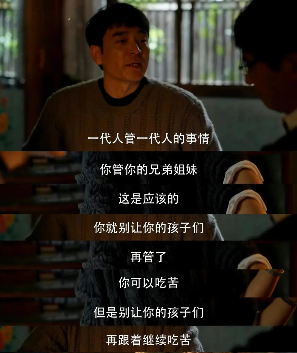 这句话是林武峰说给“孝庄”庄超英的。 林武峰跟庄超英一样,同样身为家中大哥,同样肩负着接济家里弟弟妹妹的责任。然而,他的家庭状态却与庄超英家截然不同。 在他的家里,出现出的是母慈子孝、兄友弟恭的和谐情况,兄弟姐妹之间互帮相助,布满了暖和与关爱。 反观庄超英的家庭,充斥着他的愚孝和庄父庄母的偏爱。庄超英毫无原则地顺从父母,甚至不吝捐躯自己家庭的长处,让庄超英的付出变得愈发极重。 一代人有一代人的活法,一代人管一代人的事儿,庄超英要刻苦孝顺无可厚非,但若因此而道德绑架,让自己的孩子也跟他一样,被自私自利的阿爹阿婆盘剥,那就错了。 只要三观正,品德好,就应该恭敬他们的的选择。林武峰是这么说的,也是这么做的。