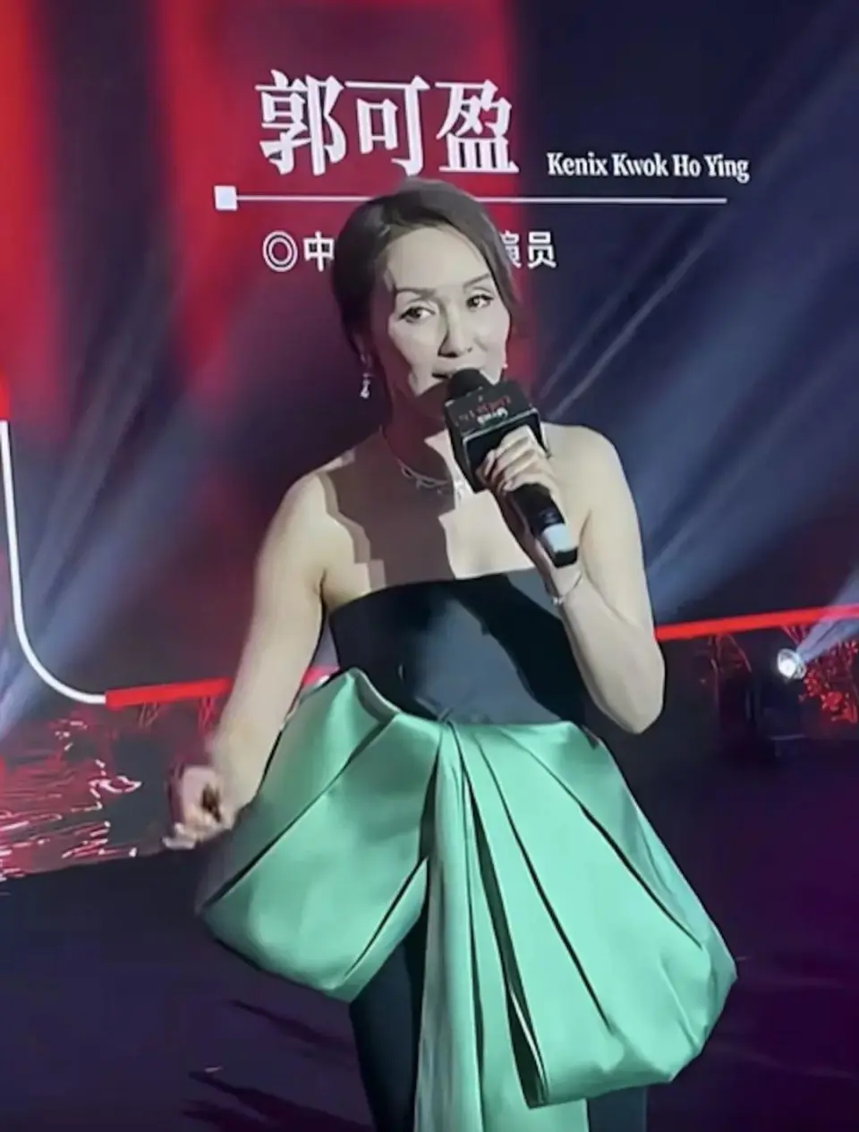 克日,前香港TVB四大花旦之一的郭可盈,突然复出到本地多个地方登台,令不少网友既惊喜又好奇。郭可盈先后到贵州和北京登台,在贵州站,郭可盈身穿一袭腰间有绿色大蝴蝶结的玄色束身裙,微露事业线,她开金口献唱林