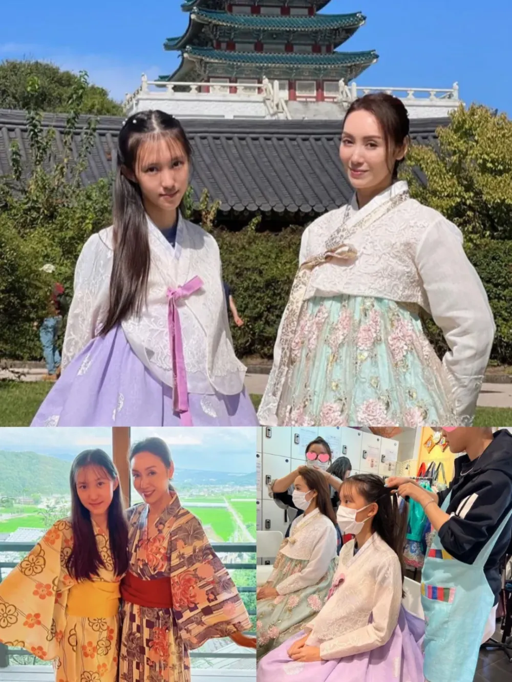 暑假时,他们会带着女儿去日本、韩国旅游。