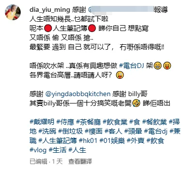 52岁港星戴耀明是TVB的资深副角,出演过上百个脚色,近期因无戏可拍,在香港一家餐厅打工,引发热议。 戴耀明在11月24日担当采访认可在餐厅打工,希望跟老板学点经验,未来大概也会开餐厅。自曝天天5点上班,要干十多个小时,一天工资三四百,上28天班月薪一万多。 戴耀明虽说和老板是朋侪,但脏活累活一点没少干,点菜、端菜、洗碗、擦桌子和洗茅厕都要亲力亲为,偶然候累到腰酸背痛,非常艰苦。 戴耀明的采访内容曝光后,网友感到惊奇,不少人指出香港做服务员日薪都是五六百,一个月最少小2万,质疑戴耀明是否被老板克扣工资了。 11月27日,戴耀明的餐厅老板张本立担当港媒采访内容曝光,他体现和戴耀明拍戏熟悉,对方偶然说想要体验生存,起初以为是开打趣,没想到对方是认真的。 记者询问戴耀明什么时间开始正式上班,张本立回复“看他什么时间有空,假如他要上班会提前一天跟我说,一开始只是叫他下战书过来帮助,当时间客人比较少,还是担心他累坏了。” 从这段回复可以推测,戴耀明应该是临时工,以是工资才比市场价低一两百。 固然不是正式工,但戴耀明的活一点没少,要下菜单、收拾桌子、倒垃圾和洗碗。 老板还吐槽戴耀明经常出错,客人要切鸡饭,他写成烧鸭饭,尽管没有求全谴责员工,但还是会偶然中爆粗口骂他,这就是写实的生存。 老板也体现戴耀明在餐厅打工会被客人认出,客人会很开心,幽默体现本身没资格当戴耀明的师傅,反而是本身在拍戏方面跟戴耀明学习,以是假如戴耀明想开铺子,他乐意分享经验。 据相识,戴耀明有大半年没有拍戏,他与TVB互助30多年,始终没能当上男一,薪水难以维持一样平常的生存,才会到餐厅打工。他上班半个月后,还是觉适当演员比较好,经常煽动老板拍视频当网红,或者跳槽到马浚伟的电视台工作。 11月26日,戴耀明发文回应此事,坦言本身不偷不抢,过本身那关就可以了,也喊话电视台高层要不要招人,同时感谢老板的帮助,笑称看不出老板是一个很搞笑的人。 |