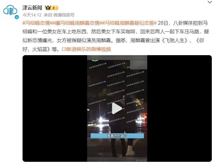 11月28日,冯绍峰和新女友压马路被拍,视频里的女生疑似演员周麟嘉。据悉,周麟嘉结业于中国传媒大学,现年36岁,曾出演《飞驰人生》、《你好,火焰蓝》等。 据视频显示,冯绍峰与一位玉人在车内用餐,之后女方下车买咖啡,二人边走边互换,举止徐徐密切。 冯绍峰曾与赵丽颖仳离后育有一子,此前被爆出与林允、倪妮等女明星也有过恋情来往。不少网友以为视频女生酷似叶珂,并批评“名媛培训班又上大分了”等内容。 本日下战书,冯绍峰和周麟嘉分别在微博作出回应。 针对冯绍峰此次新恋情传闻,网友反应不一。部分网友送上祝福,以为其仳离后开启新恋情属正常环境;也有网友对其新恋情对象选择表现质疑。 你怎么对待呢? 接待批评区留言讨论