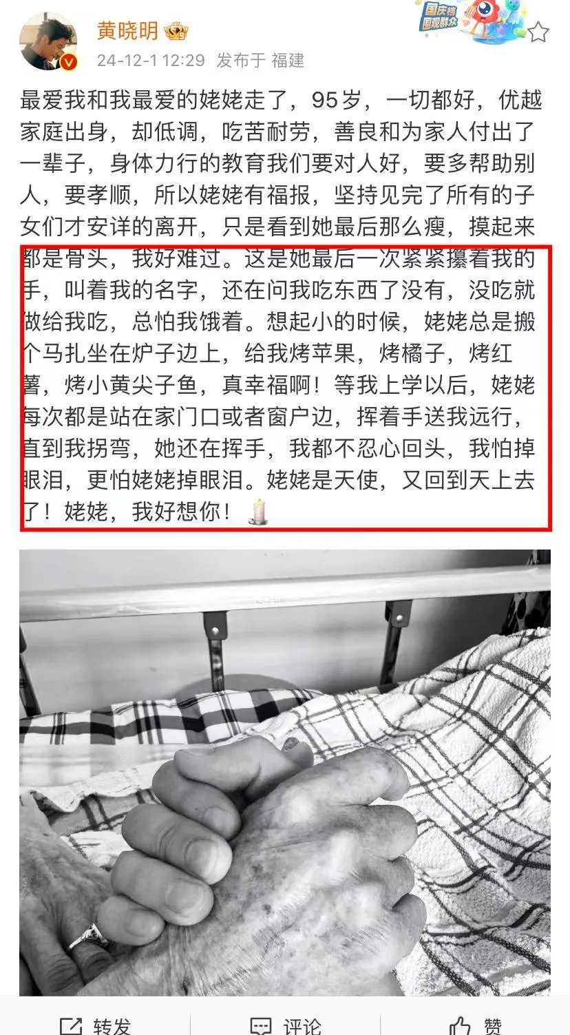 黄晓明也是近期有点背,不但主演的影戏票房不佳,而且网红妖怪爆料他已经和叶珂分手了。 黄晓明路演的时候感情不佳,大概由于自己的私事影响到影戏票房,照旧由于女友叶珂给他带来很大的打击? 黄晓明发文透露他最爱的姥姥走了,95岁,统统都好,良好家庭身世,却低调,刻苦刻苦,善良和为家人付出了一辈子,身材力行教育他们要对人好,要多资助别人,要孝敬,所以姥姥有福报,对峙见完了全部的后代才安详地脱离。 姥姥末了很瘦,摸起来都是骨头,他好难过。 这是姥姥末了一次牢牢攥着他的手,叫着他的名字,还问他吃东西没有,没吃做给他吃,总怕他饿着。 想起小时候,姥姥总是搬个马扎,坐在炉子边,给他烤苹果,烤橘子,烤红薯,烤小黄尖子鱼,真幸福啊! 等他厥后上学了,姥姥每次都是站在家门口大概窗户边,挥动手送他远行,直到看不到,还在挥手,黄晓明都不忍心转头,怕自己掉眼泪,更怕姥姥掉眼泪。 姥姥是天使,又回到了天上去了,姥姥,好想她! 看得出来,姥姥肯定很宠他,毕竟他也是家族的荣耀,成为一名闻名的演员,而且是一个热心公益奇迹的演员,做了很多善事,而且对峙不懈,所以黄晓明绝对是他们家的骄傲,是很多亲朋的骄傲。 黄晓明长得像妈妈,所以有点像姥姥,姥姥年轻的时候肯定也是一个尤物。 客岁过春节,黄晓明带着儿子小海绵回青岛故乡,看望了姥姥,当时姥姥的状态看起来还不错。 客岁7月份,黄晓明发文为姥姥庆贺95岁生日,说想通过微博给姥姥留下一个印记,家和万事兴,家有一老如有一宝,姥姥真是各人的宝。 姥姥很幸福了,大孙子很有出息,而且暮年生存肯定很幸福。 百口人聚会合会,为姥姥庆生,黄晓明把儿子小海绵也带回故乡,小海绵站在太姥姥的身边,一家人也是幸福和睦,其乐陶陶。四代同堂,团结友爱的各人庭,让人倾慕。 姥姥对黄晓明影响很大,也是姥姥的教导,让他对峙多年一直做善事,为很多地方捐赠爱心,资助更多人走出困难。 姥姥告诉黄晓明,也就是他的老姥爷,肯定要对峙行善,不求回报。姥姥的家训是老实、勤劳、宽容、守法,姥姥是他们一家的骄傲。 黄晓明和姥姥感情很深,也是由于和姥姥相处一段时间,大概寻常父母工作忙,姥姥会资助照顾他。 黄晓明对姥姥感情很深,实在很多小孩都是姥姥或奶奶带大的,他也不破例。黄晓明常常回故乡,给姥姥庆生,险些没有落下吧? 黄晓明真的很孝敬,常常回故乡伴随父母以及姥姥过春节,曾经他登上央视春晚演出,是妈妈和姥姥伴随他。 尊长就像一面旌旗,永久领导子孙们一起向前,奔向优美的幸福生存。黄晓明家的教育肯定很到位,他成名后,不但踊跃捐赠善款救助须要资助的人,他的爱心基金会一直在做着善事,而且都是第一时间送出温暖和关怀。 记得倪萍老师和姥姥的故事也很感人,看来山东姥姥真的很善良,很有爱。碰到如许的姥姥,是黄晓明的福气,毕竟姥姥95岁才去世,算是喜丧了。 黄晓明和姥姥的感情不亚于和父母的感情,所以他肯定是姥姥心目中最孝敬的外孙。 人从出生开始,就在和身边的人告别,漫长的人生,要告别很多人,这个过程有幸福,也有痛楚,但更多的是发展,学会更好的告别。告别不是生命的闭幕,而是传承,对家训的传承,对优美事物的传承。 黄晓明做到了,他已经很乐成,在天之灵的姥姥肯定会为他高兴,祝福他幸福健康,奇迹一帆风顺。 |