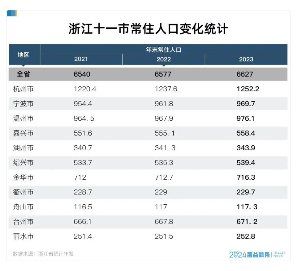 在全国生齿负增长的配景下,统计年鉴显示,2023年全国31个省市,仅有11个实现了常住生齿正增长。 增长超过10万的,仅有浙江、广东、海南、上海、江苏、新疆六个省市。 此中,浙江又以50万的生齿增长量,力压位居第二的广东(49万),一连三年高居全国增量第一,对其他省份形成了“断崖式”领先。 更令人惊奇的是, 虽然浙江和广东生齿增量差不多,但两者的构成却有巨大的差别。2023年,广东生齿天然增长了35万,而浙江生齿天然淘汰了5.7万。 换句话说,广东生齿增长重要靠生娃,而浙江的生齿增长重要靠抢人。 假如不思量生齿天然增减的因素,那么,2023年,浙江生齿净迁入为55.7万人,而广东为14万,相差3倍之多! 中国“抢人第一省”,再也藏不住了。浙江,为何能成为“抢人大战”的赢家? 从前我们说“东西南北中,发财到广东”,但外来生齿占比最高的省份,却是浙江。 七普数据显示,浙江省外流入的常住生齿达1618.6万人,外来生齿占总生齿的比例高达25.1%,高居全国第一。 匀称算下来,浙江每4个人里,就有1个是外地人。 这些外来生齿,重要来自哪些省份?浙江统计局曾经公布了2020年省外活动生齿的泉源地,流入浙江的外地人,重要来自安徽省、贵州省、河南省、江西省、四川省,每个省都超过100万。 值得注意的是,这5个省份中,除了安徽和江西之外,贵州、河南、四川都跟浙江并不相邻。 特别是相隔千里的贵州,越来越多人正在涌入浙江。相较于2010年,贵州流向浙江的生齿十年间增长了132.9万,已经达到282.8万之多。浙江,成了贵州生齿流出的第一目标地。 这就很故意思了。要知道,贵州间隔成都、重庆都比力近,传统上也属于“泛珠三角”省份,到广东也很方便,为何要扎堆前去浙江,舍近求远呢? 显然阐明白浙江的强大吸引力。水往低处流,人随财产走。经济和就业,无形中引导着生齿的活动。 来到浙江的,重要是打工人群体。根据七普数据,浙江的流入生齿中,16-59岁劳动年事生齿为1411.4万人,占总量的87.2%。浙江省统计局分析,省外流入生齿的迁移缘故起因重要是工作就业,占总量的82.2%。 为什么这几年,浙江提供的就业时机越来越丰富?这又跟民营经济发达,有很大的关系。 中国常用“56789”来概括民营经济的重要作用——即民营经济贡献了50%以上的税收,60%以上的国内生产总值,70%以上的技能创新结果,80%以上的城镇劳动就业,90%以上的企业数量。 而在民营企业的规模和质量上,浙江都是当之无愧的全国第一。 2023年,浙江年末在册民营企业和个体工商户为1001万户,初次突破千万户,占全部策划主体的比重为96.8%,民营经济增长值占全省生产总值比重的67.2%。 在全国工商联发布“2024中国民营企业500强”榜单,浙江上榜的民营企业有106家,已经一连多年位居全国第一。 排名厥后的江苏(89家)、山东(50家)、广东(50家)、河北(34家),与浙江差距都比力显着。 此外,和邻省江苏团体方向传统制造业差别,浙江财产的最大特点就是“新”,更方向新财产、新业态、新经济。这也让浙江偶然机抢占更多年轻、高学历的生齿。 最具代表性的就是杭州。2023年,杭州数字经济核心财产实现营收18737亿元,位居全国第一;数字经济增长值对GDP贡献占比为28.3%,同样也是全国最高。作为中国重要的互联网之都、电商之都,杭州吸引了大量年轻人前来就业、创业,多年来都是国内人才净流入率第一的都会。 七普数据显示,2020年浙江的迁入生齿中,18~34岁青年生齿占50.2%。随着源源不绝的年轻人“用脚投票”,原来有些老龄化倾向的浙江,居然变得更年轻了。 浙江生齿增长的另一大上风,是全省发展特别平衡,每个都会都是全国抢人的“吸水泵”。 国内绝大多数省份为了应对“抢人大战”,都形成了“强干弱枝”的模式——省内的生齿,不绝向省会都会大概核心都市圈聚集,以一省之力托举出一个超等都会。 好比湖南省,就是长沙“一城独大”。据湖南统计局数据显示,2022年末,湖南常住生齿6604.0万人,比上年淘汰18.0万人。全省14个地市州中,除了长沙实现正增长外,其他13个地市州全部为负增长。 浙江的情况,就完全差别了。 2023年,浙江省内全部11个地级市,均实现了常住生齿的正增长,连位置最冷清、生齿最少的舟山市,都增长了3000人。 同时,浙江的都会生齿梯队,分布也非常公道。除了杭州生齿早早突破1000万以外,宁波和温州正在奋起直追,大概几年之后就将成为浙江第二和第三个千万级都会。GDP最强的3座都会杭州、宁波、温州,成为保卫浙江生齿增量的绝对主力,合计贡献了全省60%以上的生齿增量。 而在三座都会之下,浙江还培养了几个中型都会,如嘉兴558万、金华716万、台州671万等。这些都会也体现出强劲的生齿吸引力,相称不寻常。好比,在2022年、2023年: 绍兴生齿分别增长1.6万、4.1万;金华生齿分别增长0.7万、3.6万;台州生齿分别增长1.7万、3.4万;丽水生齿分别增长0.1万、1.3万。 这样的生齿平衡增长态势,放眼国内,没有任何一个其他省份可以或许与之媲美。就连号称地区平衡发展最好的江苏省“十三太保”,也做不到生齿普涨,在苏北都会盐城、宿迁等均出现了常住生齿负增长的情况。 能做到生齿增长“全面着花”,体现了浙江的一个根本特点——均富。 浙江的城乡、地区差距,都是全国最低的。根据2020年的数据,浙江城乡住民收入倍差为1.96,低于江苏、福建和广东(分别为2.19、2.25、2.49),也远低于