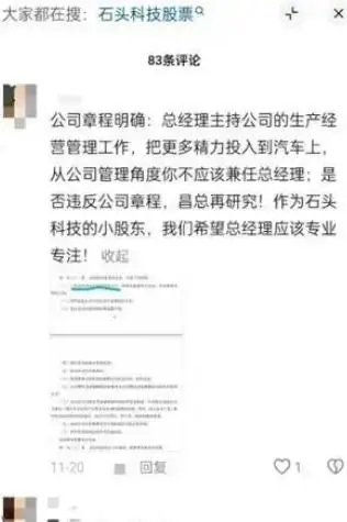 克日,石头科技董事长昌敬在交际平台发布浩繁关于其个人到场“戈壁越野”运动的视频,此举引来石头科技投资者的不满,认为昌敬有些“不务正业”。 有网友在区表示,作为公司总司理应该把更多精神投入到汽车上,盼望作为总司理应该专业专注。尚有网友戏谑称:“庆祝昌老板用石头科技圆了本身的汽车梦”。面对越来越多的负面评论,昌敬多次在其交际平台对此事做出回应。 11月29日,昌敬发布视频表示,铺天盖地的评论为其带来了肯定的困扰。他盼望持有石头科技股票的投资者可以耐心一点,如今是一个战略的转型期,特别是一个阵痛期,势必会带来公司的一些变化,这些变化都是为了以后更长远的发展。“如今石头是一个根本面比力好的时间,有如今的根本面,到最后的产生效果,我以为也不会有特别长的时间了”。 据悉,客岁3月至本年6月,昌敬通过会集竞价和询价转让等方式多次减持石头科技股票,对石头科技持股比例由23.15%降至21.09%,累计套现约8.88亿元。 从最新的财报数据来看,2024年第三季度,石头科技营收为25.91亿元,同比增长11.91%,归母净利润3.51亿元,同比下滑43.40%。 值得一提的是,三季报发布前的10月8日,石头科技刚刚创出333.5元/股的年内高位(除权后)。截至12月3日,石头科技股价为222.54元/股,最新市值为411.1亿元,不到两个月的时间,石头科技股价已下跌超33%。 公开资料显示,昌敬现年43岁,曾在傲游天下、微软、腾讯、百度等多个大型科技公司任职。自创建石头科技后,昌敬不停担当公司董事长和总司理。截至本年9月末,昌敬持有石头科技21.03%股份,为公司第一大股东、现实控制人。在《2024年·胡润百富榜》中,昌敬依附105亿元的财产位列第494位。 |
