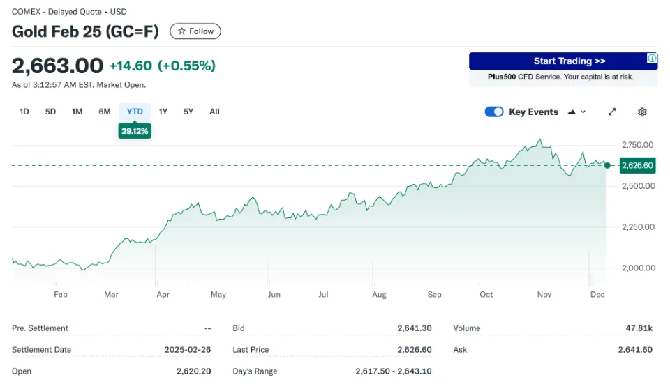 自2024年初以来,金价一起高歌猛进,在10月一度触及每盎司2800美元的汗青高点。