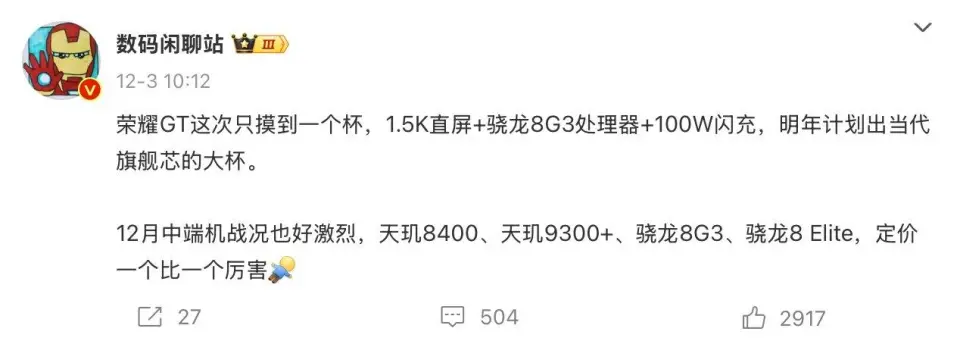 12 月 9 日,年度力作光彩GT 即将登场,光彩手机官方微博曝光了这款机型的外貌筹划:采用简约的后盖筹划,镜头模组有着满满的游戏风格。 别的,光彩还约请了电竞冠军一诺作为光彩GT 的性能调校官,打造出性能全开的超强手机。 不但云云,根据微博数码博主@数码闲聊站 此前的爆料,光彩GT 配备 1.5K 直屏、搭载第三代骁龙8 移动平台、配备 100W 闪充。 光彩GT 将在 11 月 16 日正式发布,你会等待这款性能旗舰吗? |