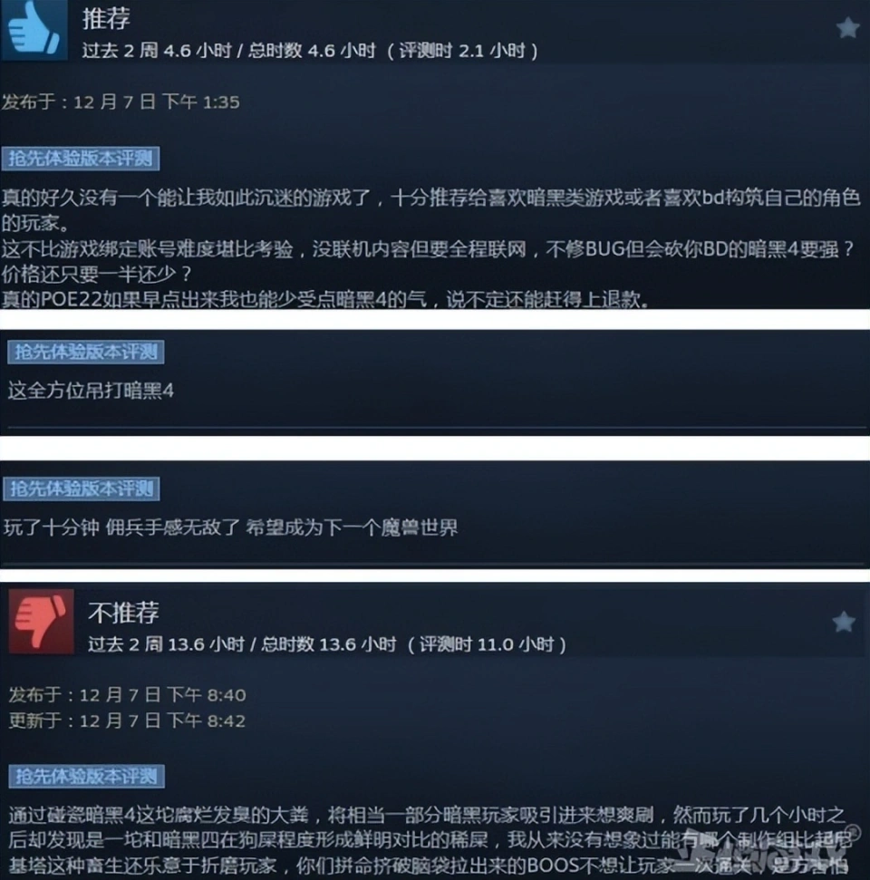 各人好,这里是正惊游戏,我是正惊小弟。 暴雪游戏一直是其他厂商游戏挑战的对象,固然大部门挑战游戏都是碰瓷的三脚猫,但是也有一些真能威胁到暴雪的游戏,比方网易对刚《守望前锋》的《漫威争霸》,口碑就还不错,克日一款挑战《暗黑4》的新游戏也是好评不断。 克日由Grinding Gear Games(后文简称GGG)研发的《放逐之路2》开启了争先测试,《放逐之路2》是一款ARPG游戏,故事发生在奇塔弗死后的20年,生存了已往六年中全部的赛季特色内容,并引入了新技能、新舆图、新仇人等,游戏的引擎也举行了改进升级。 游戏支持Steam、Epic、官网独立客户端、PS5、XSX|S 平台,须要留意的是游戏不但锁国区,也锁越南韩国等国家地区,但是支持繁中。 《放逐之路2》是款免费游戏,现在争先版须要购买,最自制的套餐售价217元,最贵的724元。总监Jonathan Rogers表现游戏在氪金筹划上会走良心蹊径,不会走《暗黑4》的路。 现在争先版本有3个章节,游戏时长25个小时,游戏有50场BOSS战, 400种怪物,1500多个被动技能。 GGG的首创人Chris Wilson曾表现,他们对《放逐之路2》很有信心,只管暴雪拥有更多的开发预算,但《放逐之路2》可以和《暗黑4》一战。 游戏简直没让玩家扫兴,一上线同时在线玩家就冲上46万,凌驾V社的《CS2》,成为Steam举世区最畅销游戏,Twitch观看人数超120万,突破了《暗黑4》的记录。 《暗黑粉碎神》骨灰级玩家,着名企业家的马斯克也在网上发文表现《放逐之路2》像是《艾尔登法环》和《暗黑粉碎神》的结晶。 现在游戏steam口碑“特殊好评”,好评率82%。 有好评网友表现,保举给喜好暗黑范例游戏的玩家,比须要全程联网,乱砍BD的暗黑4要强,而且价格还自制一半。更有玩家直言,吊打《暗黑4》。尚有网友表现,佣兵手感无敌,有希望成为下一个《魔兽世界》。 也有被虐到的差评玩家表现,游戏是在碰瓷《暗黑4》这托粑粑,吸引暗黑玩家,游戏学宫崎英高折磨玩家。 小弟嘠绿共:现在暴雪仍旧不是当年的暴雪了,爹味十足的《暗黑4》就算顶住了这次《放逐之路2》的打击,也难保还能顶住下一款“暗黑杀手”的打击。 一个正惊题目:你以为《放逐之路2》能替换《暗黑4》吗? 使用迅雷加su器玩游戏,输入口令“17173game”可以免费获取7天会员 |
