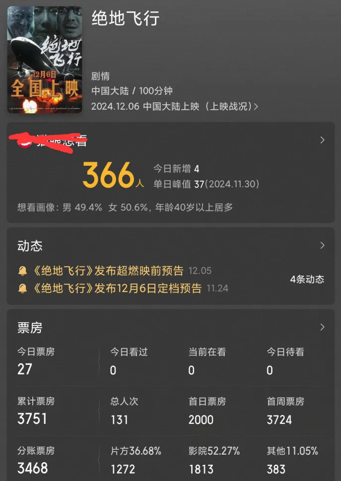 贺岁档似乎真的酿成了鸡肋。 快一个月内地影戏市场就一部《好东西》算得上黑马,上周末9部新片上映,本以为可以或许让市场变得火热一点,没想到《好东西》依然是一枝独秀。 蝉联18天日冠,《好东西》的对手终于要来了? 停止12月9号21点,内地单日票房前三分别为《好东西》《孤星计划》《破地狱》。 《好东西》单日票房破1000万,也是整个市场唯逐一部单日票房破千万的影戏,排片占比回升到23.3%,票房占比为31.1%,各项数据处于绝对的优势职位,上映18天就蝉联了18天日冠,累计票房破5.51亿,预测终极票房有望打击7亿大关。 当然了可否到达这个目的就看本周新片的表现了。 《孤星计划》单日票房为715万,排片占比为18.2%,上映3天累计票房为5700万。 作为一部耗资1.5亿,请来大巨微小近30位明星的国产大片,这个结果很明显是不合格的,按照现在的走势影戏终极票房可否破1亿都是题目,相比于同组合的王俊凯易烊千玺,王源的首部男主大片确实有点让人扫兴,也意味着影戏之路不好走了。 《破地狱》点映就冲上了单日票房第三。 影戏点映日票房为277万,排片占比1.5%,票房占比高达8.8%,上座率冠绝群雄。 现在点映累计票房为1716万,影戏口碑也是相称精彩,在中国香港市场还突破了华语片影史票房记载,香港票房直逼1.5亿港币,黄子华酿成了笑剧之神。 不外受限于题材和地区,《破地狱》内地票房可否大爆要打上疑问?不管怎么说,以《破地狱》的热度绝对是《好东西》本周的最强对手。 惨!请18个外国演员撑局面,上映4天亏了1亿,这国产片就是个笑话! 除了《孤星计划》外,首周末另一部国产大片《绝地飞行》也成为贺岁档的票房笑话。 停止12月9号21点,《绝地飞行》上映第4天,单日票房竟然跌到了27元,天下院线只剩下29场排片,影戏累计票房才3751元,你没有看错就是不到4000块钱,算是院线分成和交税,影戏制作方终极只拿到了1272块钱。 根据报道,影戏耗资1亿,花了近1年时间制作。 没想到上映才4天就差不多被院线下线了,1亿的本钱都打了水漂,最让人啼笑皆非的是影戏主创的脑回路。 《绝地飞行》是一部纯国产片,连合拍片都算不上,但影戏却请来了18位外国演员,还特意宣传影戏是国际化,有法国,美国,加拿大等好几个国家的演员出演,就连剧情都是高大上的救济外国总统。 说的是在将来,一个外国的总统专机被劫持了,颠末会商调查,主角们大吃一惊,绑匪似乎是一个程序,于是他们预备动用AI人工智能作战,想要夺回飞机的控制权。《绝地飞行》很明显是想要假冒好莱坞大片来瞎搅内地观众。 以致就连好莱坞的zzzq都学到有模有样,片中演员什么肤色都有。 加上神似好莱坞科幻大片《绝密飞行》的片名,号称真正使用了波音飞机拍摄,殊效局面火爆等等噱头,都是想内地观众“误会”影戏是一部超等好莱坞大片,痛惜现在的观众太聪明白。 市场也变革太大了。 放在之前,请来这么多外国演员撑局面或许真的可以或许忽悠一些观众买票。 可现在好莱坞自身都难保了,今年好莱坞在内地市场不知道扑街了多少大片,这种山寨影戏就更别想得到观众的青睐了。 不得不说国产片把蹭热度搞噱头的心思放在制作上该多好! |