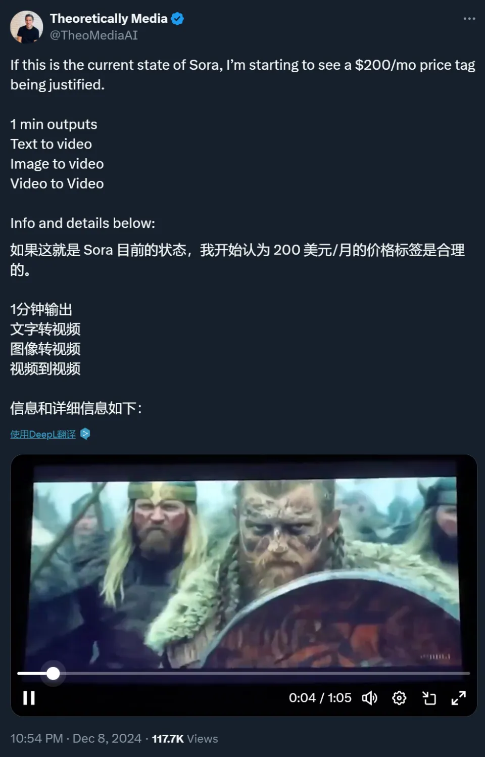 Sora 真的要来了? 迩来几天,OpenAI 开启了为期 12 天的连续发布,第一天发布的 o1 完全体和 200 美元一个月的 ChatGPT Pro 革新了外界对 AI 大模子定价的认知;第二天发布的强化微调(Reinforcement Fine-Tuning)则吸引了大批研究者和开发者的爱好。 那第三天发什么呢?种种信号表明:很有大概是新版本的 Sora。 直播预约这种推测源自 OpenAI 创意专家 Chad Nelson 在伦敦 C21Media 活动中的一次分享。在分享中,Chad Nelson 现场播放了多段由 Sora 天生的视频,并着重先容了视频中的一些细节,好比在一个战役局面中,一个女兵士的脸上、皮肤上乃至牙齿上都充满了泥浆和鲜血,而且这些印迹是有 3D 深度的(阐明已经凝固),这阐明 Sora 对于它所天生的场景是有肯定了解的。 根据泄漏的现场视频,网友还整理出了更多关于新版本 Sora 本事的信息: 而且,从画面效果来看,Sora 天生的视频无论是分辨率照旧帧率好像都很高,主体同等性也令人印象深刻。 如果 ChatGPT Pro 那 200 美元的订阅费用里包罗 Sora,大概这个费用看起来就没有那么离谱了。 除了这个泄漏视频,OpenAI 官方 Youtube 账号也在周末放出了新的 Sora 作品,这大概也是给 Sora 的新发布做预热。 在刚刚上传的视频中,我们可以看到一群狂欢的年轻人在舞蹈。该视频由东京跨学科艺术家 Emi Kusano 借助 Sora 完成。 根据先容,这个项目是受到了 1980 年代一个时尚团体 Takenoko-zoku 开导创作出来的。 根据视频内容,我们不难发现 Sora 精准地捕获到了一群年轻人狂欢的场景,特殊是舞蹈场景,显现了 Sora 独有的、可以创造出一种人类难以复制的独特魅力。尤其是多人物同屏,以及画面的表现力运镜非常高级,同时它还保持了影戏般的质感,人群中的每个个体细节表现非常精彩。 Emi Kusano 表现,创作过程中最让她高兴的是 Sora 可以或许将本身脑海中想象的图像通过提示转化为视频,她将这种感觉形容为像是掉进了兔子洞(兔子洞源于著名童话书《爱丽丝周游奇境记》,在这本书中,主角爱丽丝从兔子洞掉入了一个拟人化的异境天下,开启了她奇妙的旅程)。 看到最新版 Sora 视频,各人都用难以置信来形容,同时也盼望如果 Sora 单独收费,代价不要太离谱。究竟 ChatGPT Pro 已经高达 200 美元一个月了。 接下来,各人可以等待一下 OpenAI 即将要发布的内容,你以为新版 Sora 会来吗? 参考链接: https://www.youtube.com/watch?v=c_kKKRQ5gYw https://x.com/JustinLin610/status/1865798885643620400 |