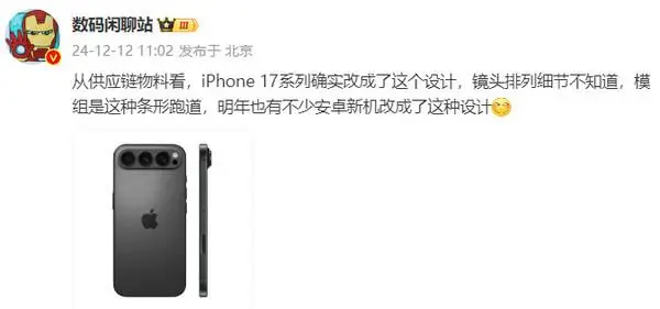 【CNMO科技消息】此前,有消息称iPhone 17 Pro系列或迎来巨大计划变更。12月12日,数码博主@数码闲聊站 爆料,从供应链物料来看,iPhone 17系列确实改成了这个计划。根据他发布的图片,iPhone 17系列计划大变,镜头模组由祖传的矩阵分列,变为了横排方式分列,与谷歌新机类似。 iPhone 17系列爆料 该博主称,“镜头分列细节不知道,模组是这种条形跑道,来岁也有不少安卓新机改成了这种计划”。假如该爆料属实,那对一直守旧的苹果来说,这次无疑是一个大变革。 相干爆料 此前,爆料称iPhone 17 Pro系列或迎来巨大计划变更。iPhone 17 Pro和17 Pro Max或采取铝金属框架,反面采取新的半铝半玻璃计划:上半部门将由铝金属制成,采取“矩形铝制相机凸起而非传统的3D玻璃”;下半部门仍将继续利用玻璃以支持无线充电功能,同时后置镜头也更凸起。 这两款旗舰机型将是自iPhone产物线划分为Pro和非Pro以来,初次在Pro系列上采取铝金属框架的高端iPhone,而之前往往只有iPhone SE和iPhone 16这种入门级型号才会利用铝金属框架,而高端iPhone均采取不锈钢框架(iPhone 15 Pro后开始采取钛金属机身)。 |