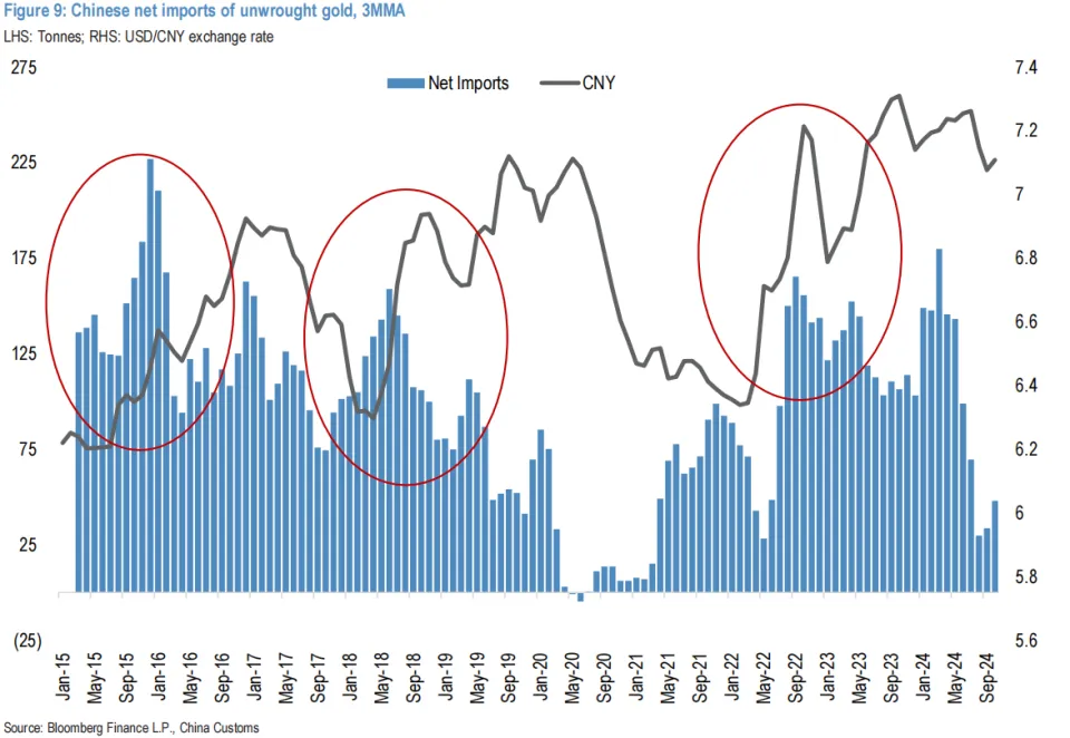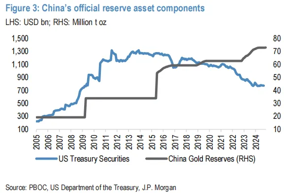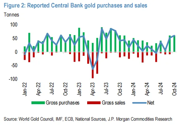 本年金价大涨30%并屡创汗青新高,市场担忧在当前代价程度下,明年谁将成为黄金的主要买家? 美东时间12月13日,摩根大通分析师发布了最新研究陈诉,继承看涨黄金市场,预计2025年黄金代价有望向3000美元/盎司迈进。分析师指出,在2025年,宏观经济不确定性加剧的背景下,黄金将继承发挥紧张的对冲作用。 陈诉以为,黄金的上涨大概会受到两种主要情境的推动。一是宏观经济动荡,推动央行和投资者增持黄金;二是宏观情况较为安稳,美联储开启降息周期,动员黄金ETF资金流入。长期来看,环球央行美元资产多元化的趋势也将为黄金市场提供支持。 宏观情况驱动黄金需求分析师以为,黄金市场的未来走势很洪流平上取决于宏观经济情况,大概出现两种截然差别的宏观情景: 情景一:宏观情况动荡 假如出现关税增长、贸易紧张局面加剧、通胀上升以及美国预算赤字明显扩大的情况,央行购买,尤其是中国人民银行,大概成为黄金需求的主要泉源。中国人民银行近期公布在11月重新购买黄金储备,这是自4月以来初次增持。 别的,中国的散户投资者在面临汇率颠簸的情况下,大概会将黄金视为保值本事,而长期投资者也大概会在通胀压力和债务贬值担忧的背景下,进一步增长对黄金的设置。 情景二:宏观情况相对安稳 假如宏观情况较为温和,市场关注点大概转向美联储降息周期。在这种情况下,一方面,黄金ETF大概会吸引更多资金流入,由于钱币市场基金的吸引力下降。另一方面,虽然央行购买力度大概不及动荡情景下那么极度,但分析师以为,央行美元多元化的结构性变革仍将连续。 央行黄金需求连续强劲只管2024年第三季度央行购金量(包罗未陈诉运动的估计)降至约186吨,但2024年前三季度的总购买量仍到达约694吨。这一数字虽然同比下降17%,但仍与2022年程度相当。更令人鼓舞的是,随着年底相近,央行购金运动出现回升迹象。 根据国际钱币基金组织(IMF)最新统计数据,本年10月份环球央行的净购买量到达了60吨,创下一年来的最高单月程度。此中,印度在10月份体现尤为突出,增长了27吨黄金储备,使其年初至今的购买量到达77吨。 别的,继10月份央行购金运动普遍回升后,中国重返市场。中国人民银行在2024年11月增长了约5吨黄金,这是自2024年4月停息购买以来的初次。虽然与2022年11月至2024年4月期间平均每月近18吨的购买量相比,上个月的购买相对温和,但这标志取中国在美国国债持有量连续下滑的背景下,重新开始增长黄金储备。 如今,中国的外汇储备中大约有23%是美国国债,远低于2010年45%的峰值。未来中国大概会进一步增长黄金储备,同时镌汰美国国债持有量。 而且比年来,环球外汇储备中黄金的占比正发生结构性变革。根据国际钱币基金组织(IMF)的数据, 截至2024年第三季度,黄金在环球官方储备中的占比已从2023年底的约15%上升至约18%,这一增长不但得益于黄金购买量增长,还由于金价自年初以来上涨了约30%,提升了黄金储备的估值。 此中, 美国、德国、法国和意大利四国合计持有约16.4万吨黄金,占环球官方黄金储备的近一半,尤其是美国单独持有环球约四分之一的黄金储备。然而,这四国的黄金持有量远高于其他国家,使得环球平均程度被拉高。假如剔除这四国,环球黄金储备占比降至约11%。 在拥有大规模外汇储备的国家中,中国的黄金持有比例相对较低,这使其成为未来潜伏的黄金购买大国。截至2024年第三季度末,环球近30个拥有1000亿美元以上外汇储备的国家中,18个国家的黄金持有比例低于11%,假如中国将黄金储备比例提高1%,相当于增长约400吨黄金购买量。 除了中国,印度、日本、沙特阿拉伯、新加坡等国的的购金活动也值得关注,这些国家增长黄金储备的活动大概反映了更广泛的美元多元化趋势。 中国散户投资者需求回暖最新数据显示,中国未锻造黄金的净入口需求在履历了八月的低谷后,近来两个月有所回暖。10月份的入口量虽然同比下降11%,仅略低于80吨,但仍标志取年初至今同比下降15%。中国零售黄金需求受多种因素影响,包罗代价体现、GDP增长、利率、汇率、房地产市场、股市和生齿统计等。 根据世界黄金协会的数据,截至2024年第三季度,中国的珠宝需求同比下降22%,但投资金条和金币的需求同比增长28%,在肯定程度上缓解了团体需求的压力。这一现象显示出只管珠宝市场低迷,但投资者对黄金作为投资工具的兴趣依然强劲。 摩根大通指出,钱币政策方面,中国政治局本周公布转向温和宽松的钱币政策,这是自2008年以来的初次。虽然具体细节和实验时间尚未明确,但在中央经济工作聚会会议上,政府允许将进行降息和财务刺激。在降息、中国人民银行再次购金以及人民币汇率影响下,摩根大通预计中国消耗者对黄金的购买欲望将保持强劲。 然而,主要风险在于刺激步调大概引发房地产和股市的强劲复苏,从而分流黄金投资资金。只管云云,人民币汇率仍旧是一个关键因素,由于黄金可以作为保值本事反抗购买力下降。 已往十年中,人民币汇率大幅颠簸时期通常陪同着中国强劲的黄金入口需求,包罗2015/16年、2018年的贸易战1.0期间以及2022年,这一时期引发了中国和人民银行近来一轮的购金热潮。 黄金ETF仍具增长潜力摩根大通指出,环球黄金ETF的持仓量如今约为3200吨(1.03亿盎司),只管这一数字相比前高点仍低约18%,但其潜伏增长空间依然巨大。根据世界黄金协