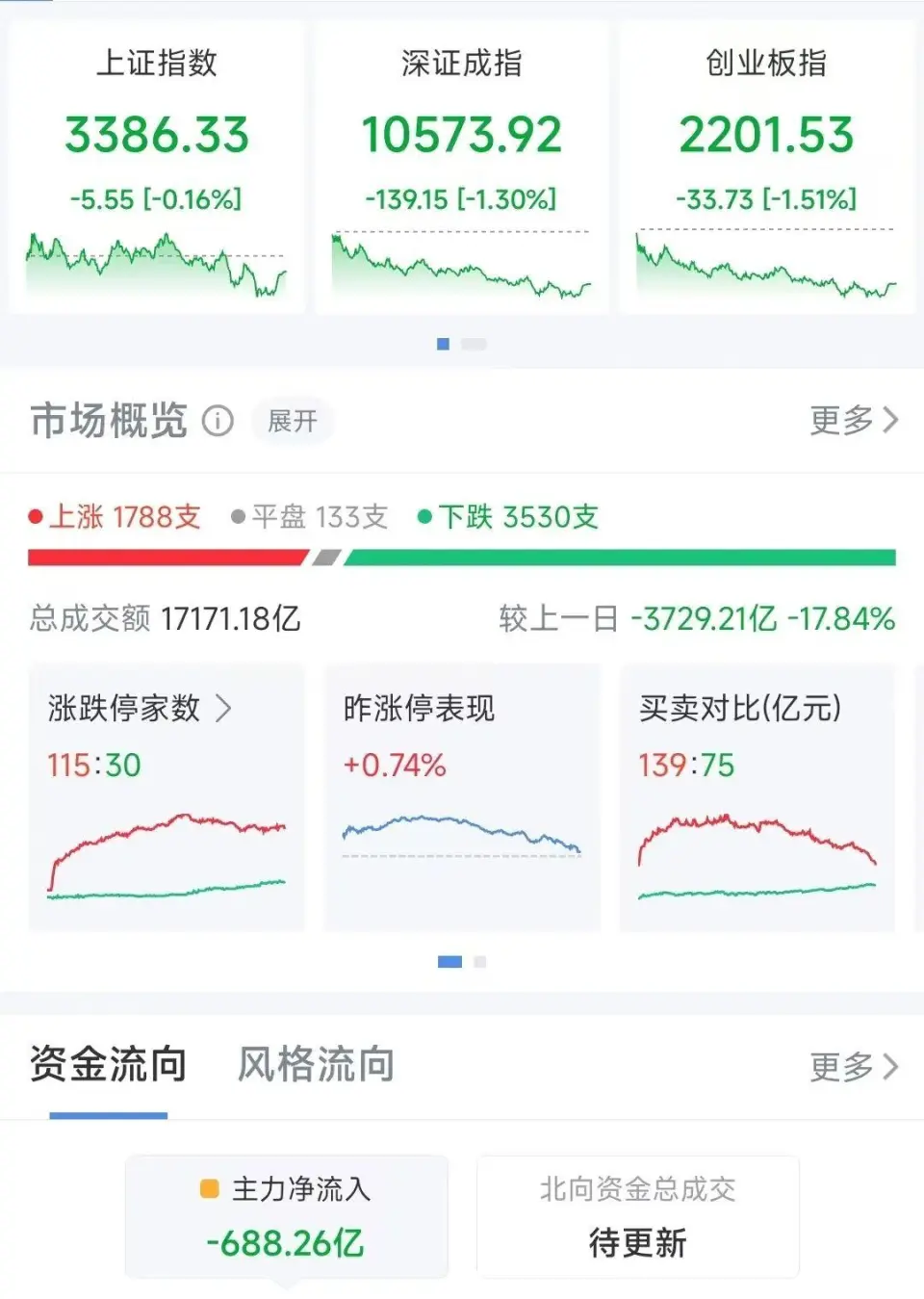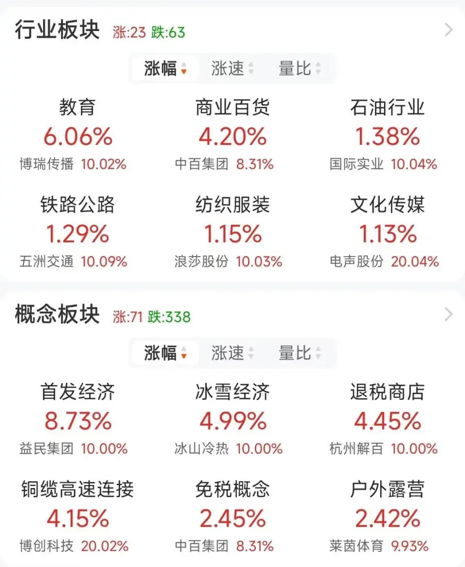 12月16日,A股三大指数收跌。制止收盘,上证指数报3386.33点,涨0.16%;深证成指报10573.92点,跌1.30%;创业板指报2201.53点,跌1.51%。市场上1788只个股上涨,3530只个股下跌,成交1.71万亿元。较前日缩量3729亿元。 市场全天震荡走低,创业板指领跌,高位股开始出现退潮,创建工业等多股上演“天地板”,别的中百团体等多只高位股尾盘炸板。盘面上除了大消费外没有特殊强势的热门,但仍有逾百股股涨停或涨超10%。从板块来看,大消费股连续发作,零售、冰雪财产、养老等多个方向大涨。铜缆高速毗连概念股震荡走强,沃尔核材涨停再创汗青新高。下跌方面,呆板人概念股展开调整,五洲新春跌停。板块方面,冰雪财产、铜缆高速毗连、零售、养老概念等板块涨幅居前,游戏、半导体、消费电子、人形呆板人等板块跌幅居前。 半导体板块体现低迷,纳芯微、乐鑫科技、中科飞测、慧智微、矩芯科技、晶合集成、艾为电子、新相微、龙芯中科等多股跌超5%。机器人板块人气股创建工业午后触及跌停,盘中上演“天地板”,成交额近34亿元。 "首发经济"概念连续大涨,大消费板块领衔跨年行情?对此,国元证券赵冬梅以为,消费行情有望跨年,“首发经济”值得器重。深圳安卓投资首席计谋研究员刘翀以为,大消费、内循环是未来刺激政策重点发力方向。东方证券宋正皓以为,政策为促进消费定调,板块有望连续受益。