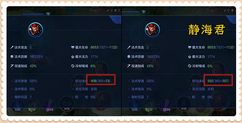 根据计算公式,在受到减速效果后,假如理论移速在250~500之间,则理论移速=实际移速,这条非常的好明白,真正稍微有些复杂的是第一条——当理论移速处于0~250之间时。 ⑵极限减速和90%减速 光说有些太干了,让我用典韦来给各人举个例子。 典韦的初始移速为385,在6个移速铭文的加持下,他的移速到达了408=385+385×6%。 当典韦利用一技能后,他的移速可以或许到达592,详细计算方式是: