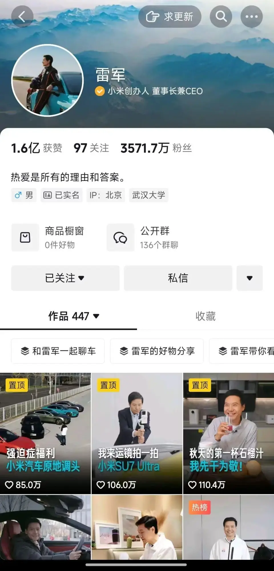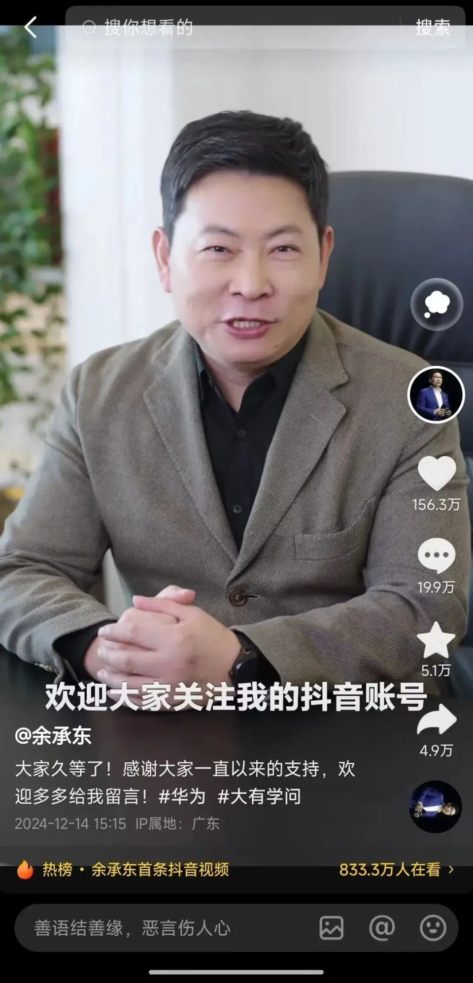 作者 | 叶二 编辑| 魏晓 余承东的抖音账号,粉丝现在已经飙涨至260万。 而此时间隔其入驻抖音,也就短短五天,自带滔天流量的企业家IP本色,在这一刻有了更具象的数据表现。 自本年11月入驻视频号,再到此次入驻抖音,余承东本人也将打造网红企业家IP的阵地,从原有的发布会、微博等品宣体系,延伸至更贴近用户、更恰当个人题材输出的短视频中。 固然,这本就是企业家打造个人IP的必经之路。 已往的一年,在雷军的带动下,市场看到了企业家个人IP聚拢而来的流量,对公司对产品所带来的巨大转化。并由此,一股企业家直播、拍视频、做IP的潮流,成为车圈的主流叙事。 这内里,自然也不能少了余承东。 固然晚了点,但开场就是王炸。 AI蓝媒汇留意到,12月12日,余承东在抖音开通账号,当天“余承东入驻抖音”的话题,直接冲上抖音热榜第一。12月14日,余承东发布了首条视频,该条视频同样冲上了当天抖音热榜第一,截至现在,已劳绩超800万人再看、156万点赞以及近20万品评。 在本日,余承东在抖音上还预告了两天后的鸿蒙智行年度直播。 此时正值鸿蒙智行发布一周年,这场直播中,不光是余承东,问界、智界、享界、尊界所对应的互助车企董事长同样将一同站台,再团结余承东在这一节点上开通抖音,显然是要打造一场车圈流量盛宴的态势。 而这也意味着,雷军在网红企业家赛道上,终于是棋逢对手。人们都说在企业家IP打造上,雷军只有一个,但同样,余承东也只有一个。 亲身了局 已往的余承东,固然同样作为企业家顶流,在业内素有“大嘴”之名,一句“遥遥领先”引起诸多追捧,但其个人IP的传播多为市场自发行为,他本人并没有亲身了局。 而缘故原由也比力简朴,就是担心“太高调了”。 本年5月份,谈到很多网友等待他能直播时,余承东就表现,好几年前内部就跟我提要搞这个,我以为太高调了,不停都把它拒掉了。 “确实从带货、卖货角度看需要直播,非常故意义,由于本日这个期间就是流量经济期间,意义非常巨大,我们公司是一个比力严谨的公司,我再思量再犹豫下。”彼时,余承东说道。 迟迟未了局,这正是一方面的思量,毕竟谁都知道余承东也叫“余大嘴”。 另一方面,也与余承东性格有关。 区别于外界对余承东朴实敢言的认知,余承东则不停以为,本身是一个“非常沉默沉静的人”,性格并不善于言辞,他现在之所以抛头露面,紧张是“做企业以后没办法了,必须逼着本身发言,要给团队通报愿景、通报要求、提目的,必须得发言。做to C产品以后,必须逼着去发言、去发布会。” 而现在,余承东终于切身了局,到场打造个人IP,或许是到了再逼本身一把的时候。 已在抖音拿下3500万粉丝的雷军带着小米SU7在车圈投下了一记重磅炸弹,这不光让市场看到了企业家IP对于产品转化的直接拉动,更是从根本上改变了这一行业的游戏规则。 在相互产品力都非常强的当下,企业家IP则成为了车圈营销的权重一环,以致转化结果也比原有的营销体系好上很多。 雷军是这样,余承东也是云云。周鸿祎就曾讥讽,余承东已经成为手机、利用体系、汽车等范畴的顶级演说家、大网红,每年为华为节流十亿广告费。 只是,对于现在的鸿蒙智行而言,这还不敷。 做大流量 问界,是第一个吃到了余承东“遥遥领先”的流量红利。 这成绩了问界已往一年的乐成。 数据显示,问界新M7 2024年累计交付量已乐成突破18万辆大关,并连续11个月稳居新权势车型年度销冠宝座,问界M9上市11个月累计大定超18万辆,连续蝉联50万元级及以上中国市场豪华车型销冠。 但一旦拆开细看,就能清晰看到问界在下半年的表现走势,是弱于上半年的。 要知道本年上半年,有很长一段时间,问界代替了理想,成为了新权势中的销冠。但从下半年开始,问界的身位不光被理想再次甩开,反倒也被零跑深蓝等给凌驾。 尤其是9月以来,虽说M9的表现仍旧很稳,仍旧爆款,但M7、M5的表现却并不乐观。以M7为例,公开数据显示,刚已往的三个月,问界M7 销量分别为17940辆、15132辆、13415辆,连续环比下滑。 这与理想零跑的猛攻有关,也与鸿蒙智行以及余承东的流量分配有关。 现在鸿蒙智行已经完备推出了四界,即便产品上定位有显着区分,但基于余承东个人有限的流量分配下,像问界在过往独享的局面已然是不复存在了。 AI蓝媒汇留意到,已往三个月内,余承东微博提及问界产品的只有两条,分别是9月30日,以及10月26日,而其他微博则更多分流至智界、享界以及尊界等产品上。 显然随着鸿蒙智行四界产品体系的渐渐上市,余承东原有的IP效应已然无法覆盖至更多的产品。也由此,在流量期间,余承东选择做大流量,将个人IP投向更广泛的视频流量池中,开通视频号、抖音号,也就成为肯定。 这也是唯逐一条路。 要知道,不同于雷军之于小米汽车,作为团体战略的一部门,雷军可以在相干产品计谋上有所取舍,而余承东的鸿蒙智行,对应的则是四家不同的车企,肯定要包管“一碗水端平”。唯有做大流量,才气为每一界都创造富足的曝光。 套用周鸿祎的说法,如果说以前每年余承东为问界省下了10个亿广告费,那么现在来说,每年他得省40个亿。 Lanmeih/本日话题 你关注余承东的抖音号了吗? |