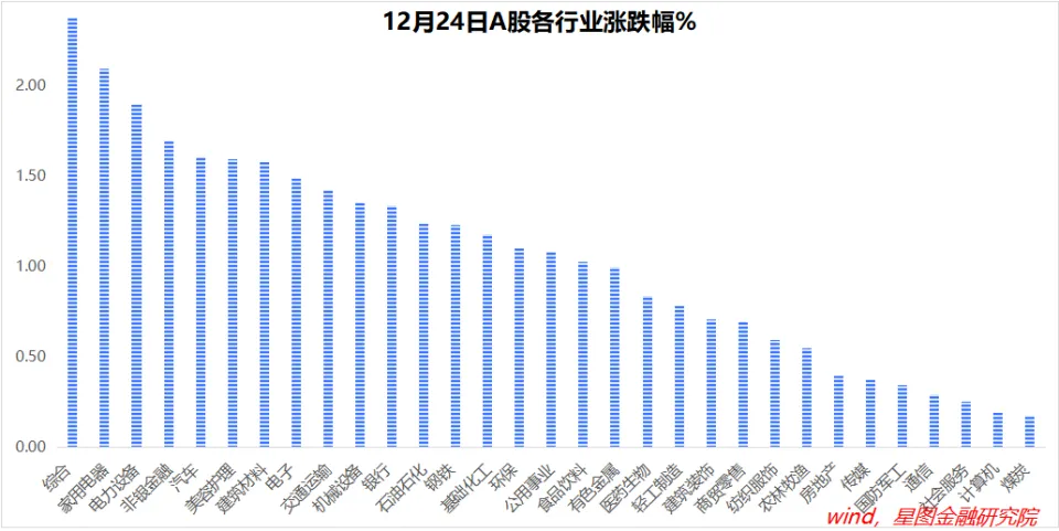 本日A股市场出现普涨行情,但成交量显着萎缩,两市成交来到1.3万亿,再次来到10月份以来的绝对低点位置,倒数第二低。 布局上看,宽基指数层面,除微盘股指数外,其他30多个宽基指数分化不大,科创50体现最好,上涨1.54%,中证2000体现较差,涨幅也有1%。 行业层面,分化相对显着,但也看不出显着的风格特征。综合、家用电器、电力装备、非银金融、汽车、美容护理等涨幅靠前,均凌驾1.6个百分点;煤炭、盘算机、社会服务、通讯、国防军工涨幅靠后,均不敷0.4个百分点。 继证监会昨夜“辟谣”ST退市炒作后,本日微盘股的恐慌感情显着降温,但严格退市为客观究竟,随着年末相近,投资者对微盘股的热情仍在回落。 相应地,在配置型资金流入支持下,权重龙头和优质红利股继续受到青睐。典型如四大行,纷纷于本日再创新高。 从本周前两个交易日看,风格分化比力显着,中证A50、红利指数、中特估指数、沪深300指数涨幅靠前,在1.4%-1.6%之间;微盘股指数、中证2000、中证1000跌幅靠前,均凌驾1.5个百分点。 相应地,行业层面,银行、家用电器、石油石化、公用古迹、交通运输涨幅靠前,均凌驾1个百分点;传媒、社会服务、商贸零售、盘算机跌幅靠前,均凌驾3个百分点。 综上可知,年末配置型资金会集流入,仍是支持A股震荡向上的焦点因素。配置型资金继续流入,但生动性资金不再生动。 相近年末,生动资金调仓博收益的空间越来越窄,这个时间,一动不如一静。接下来几个交易日,市场成交量或继续在低位倘佯。 相应地,配置型资金的话语权或显着提拔,后续权重指数仍有望取得超额收益。 假如年前生动资金不再生动,那么2025年1月2日的行情就很有看头了。 试想一下,假如这段时间积压的交易需求会集在1月2日开释,则天量成交是大概率事故。成交量的快速放大,是一个重要的变盘信号,起码生动资金有望再次生动起来,跨年行情有较大概率会二次重启。 假如是如许,当下最佳战略就是提前布局,不要等闪电来的时间再上车。就2025年来看,消耗和科技有较大概率成为整年主线,相应地,当前逢低布局消耗和科技板块的优质龙头,仍是胜率较高的选择。 已经在车上的,安心持股就好了。 就本日行情看,制止收盘,万得全A涨幅1.14%;中证A50、沪深300、中证500、中证1000和中证2000涨幅分别为1.36%、1.27%、1.32%、1.12%和1.0%。 行业层面,综合(2.38%)、家用电器(2.09%)、电力装备、非银金融、汽车、美容护理、修建材料等涨幅靠前,均凌驾1.5个百分点;煤炭(0.17%)、盘算机(0.19%)、社会服务、通讯、国防军工、传媒、房地产等涨幅靠后,均不敷0.4个百分点。 本日两市成交金额13076亿元,较上一交易日缩量2232亿元。 |