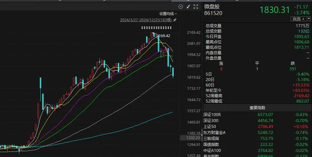 指数没怎么跌,但是个股却跌得稀里哗啦。许多网友指出:A股愣是涨出了“股灾”啊! 停止本日盘中11点20分左右,本周市场指数多数下跌。此中,中证2000指数周跌幅超过6.8%,而北证50 、申万创业指数等下跌超过4%。 个股方面,停止盘中,沪深两市本周4560多只个股都是下跌的,此中跌幅超过30%的个股约56只,跌幅超过10%的个股约1151只,而跌幅超过5%的个股逼近3000只。也就是说,靠近60%的个股,本周以来停止本日盘中浮亏较大。 详细看,自12月13日以来停止昨日(12月24日): 1、指数方面:12月13日以来,沪深300指数8个生意业务日仅有3次下跌,别的5个生意业务日全部上涨。很显着,大盘股的提振下,指数团体得到支持和提振; 2、上涨情况看:12月13日以来,团体涨少跌多,此中仅有3个生意业务日上涨个股占比超过50%,别的时间上涨个股占比根本低于4成;而上涨个股超5%的,均匀不敷5%; 3、再看看下跌情况:8个生意业务日以来,5个生意业务日下跌个股家数占比超过50%,此中3次超过80%,足见下跌个股数量之多。而下跌超过3%、5%的个股占比,占据下跌绝大多数。 现实上,这里小微盘股是重灾区。小微盘股的此次雪崩,祸端或深埋于上周末引发热议的退市新规。回溯至 2024 年 4 月,证监会重磅发布《关于严酷实行退市制度的意见》,这份被市场称为史上最严的退市新规,如同高悬的达摩克利斯之剑。现在,7 个生意业务日后,A 股上市公司年报大幕即将徐徐拉开,新规即将全面落地实行。在市场对中小盘股年报业绩预期广泛低迷的大配景下,前期过分炒作、持续走高的小微盘股,天然成为资金抛售的重灾区,迎来暴跌也就不敷为奇。其次,反观逆势上扬的红利板块,其崛起背后是近期长债市场的逼空行情在作祟。当资金疯狂涌入国债市场逐利之际,A 股市场的资金偏好也随之寂静转向红利板块,作为大盘价值代表的上证 50 指数受此推动,稳步走高。 纵观汗青,因 “退市风波” 引发的小微盘股崩盘惨剧念兹在兹。本年一季度与二季度,微盘股指数均遭遇重创,暴跌不止,其根源皆在于退市新规的威慑。从前两次明显下跌案例来看,微盘股指数均呈现断崖式下跌,跌幅广泛靠近 20%。以史为鉴,当前微盘股指数跌幅刚过 10%,按照汗青规律推断,后续仍有进一步回撤的风险。不外,值得光荣的是,当前价值风格板块挺身而出,继承起护盘重任,使得指数团体下行空间相对有限,这在肯定水平上也将对微盘股的下跌形成缓冲,遏制其跌幅进一步扩大。 但是,必要留意的是,当前银举动首的红利板块持续拉升,但这种割裂的局面难以为继。接下来仍需谨防小微盘股的反复以及银举动首的红利板块的冲高。 |
