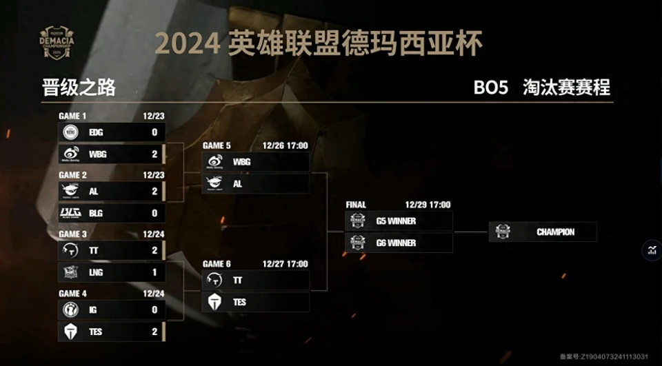 德玛西亚杯赛事火热举行中,12月26日进入半决赛赛程。回首之前德杯赛况可谓出色连连,尤其是TES与IG的忍者大战,至今让人回味无穷。首场半决赛将在WBG与AL之间举行。别的一场半决赛于12月27日TES对战TT。下面来看看这两场角逐有哪些出色看点吧。 WBG对战AL。引入Tian和Hang后WBG的实力得到进一步提升。从之前角逐看,WBG选手们之间并没有出现磨合方面的标题,尤其是tian和小虎的中野联动相当出色,究竟两人都是荣誉满满的宿将,丰富的履历足以支持他们即便没有磨合多久,仍旧可以打出出色的配合。 对于WBG与AL的角逐,专业电竞预测机构以为WBG的指数是1.58,AL的指数是2.33,WBG稍胜一筹。AL也并非软柿子,圣枪哥和Tarzan都具备极强的Carry本领,尤其打野选手Tarzan,在AL队内应该没人比Tarzan更懂WBG了,再加上对战老东家的BUFF,AL也是有机会取得本场角逐胜利的。 12月27日TT与TES的角逐是半决赛焦点战。TES在与IG的角逐中,轻松零封对手。打野选手Kanavi在野区显现出亘古未有的统治力,超神战绩足以阐明把jiejie的野区打爆了。下路选手JKL竞技状态仍旧火热,一手烬对老队友Theshy和Rookie重拳出击。 对于TES与TT的角逐,专业电竞预测机构以为TT的指数是6.50,TES的指数是1.10,TES占优。四连胜的TT有着本届德杯大黑马之称,但在硬实力方面TT较之TES有着一定的差距。只要后者稳固发挥,TT的德杯征程应该就此竣事。 小伙伴们,你以为这两场角逐哪两支队伍会取胜呢? |