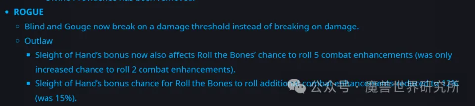盗贼11.1的改动简直少的可怜,乃至没有别的职业改动的标点符号多,堪称完善无瑕! 致盲和凿击现在在受到伤害凌驾阈值时被冲破而不是受到伤害时 友谊提示:因为微信公众号平台改变了规则,请在阅读后点击“在看”并加星标,这样才华在下一次推送时实时收到本号文章。 |