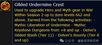 根据字符串可以解读出暴雪的最新改动,玩家可以通过11层地下堡获取鎏金纹章,而每周最多可以拾取3次鎏金宝藏。每次嘉奖为6个鎏金纹章,累计每周最多获取18个。这一改动让地下堡成为了一种额外获取鎏金纹章的方式,为那些不到场大秘境或史诗团队副本的玩家提供了更机动的升级途径。