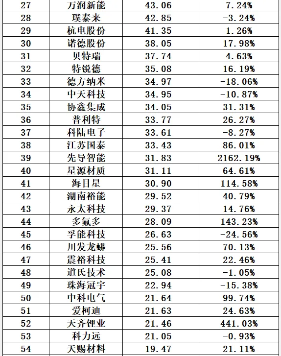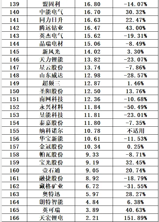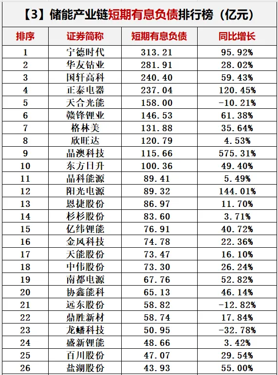 同时,169储能企业短期有息负债合计4525.56亿元,约同比增长29.19%。具体到企业层面,10家企业短期有息负债规模超100亿元,前三名依次为宁德期间、华友钴业和国轩高科。