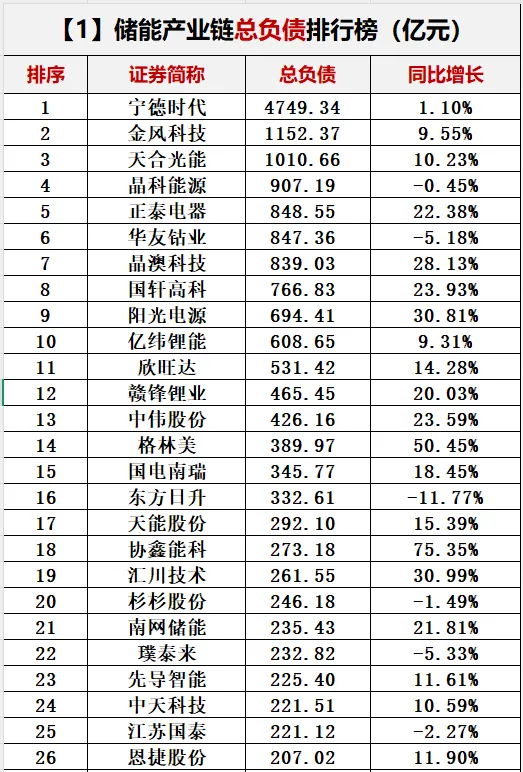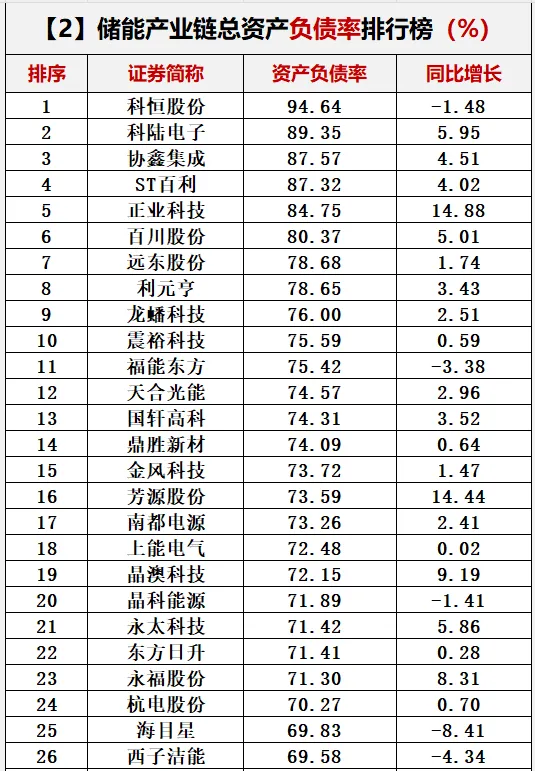 储能洗牌继承,整体负债继承增长。