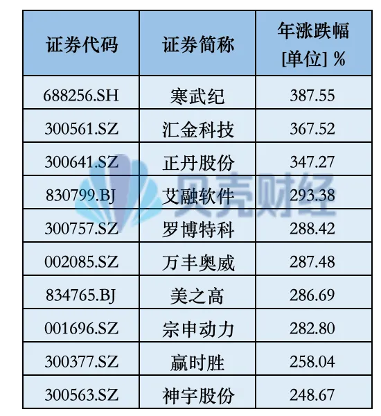 2024年,A股市场走过了升沉的一年。 在“先抑后扬”的走势中,不乏惊喜。9月下旬以来,A股市场迎来一波大涨行情,也带动整年重要指数出现上涨状态,其中,科创50大涨16%,创业板指、上证指数涨逾12%,深证成指涨超9%。 从个股来看,90多只个股涨幅凌驾100%,其中,寒武纪年内涨幅最高,到达387.55%。已往一年,各种概念板块轮替登场,AI算力概念可谓贯穿整年,国企改革、低空经济、大金融和并购重组、冰雪经济、谷子经济等概念同样受到市场追捧。 几家高兴几家愁,医药生物板块依然未走出低迷周期,在行业指数中跌幅最高,农林牧渔板块表现也不佳。别的,披星戴帽的个股遇冷,*ST大药、*ST博信、*ST龙津等个股跌近80%。 清华大学国家金融研究院院长、金融学讲席教授田轩在接受贝壳财经记者采访时表现,2024年资源市场虽有升沉颠簸,总体比力妥当,重要受益于多项政策的积极推动。9月以来一揽子政策,如一场“及时雨”,为市场注入一剂“强心针”,极大地提振了市场信心。 关键词·行情 科创50大涨16.07%领跑,两大行业涨超30% 2024年的A股经历过低迷时刻,也出现了千股涨停的火爆场景。 整年走势团体出现“先抑后扬”。团体来看,重要指数均出现上涨状态,科创50涨幅领先,大涨16.07%,创业板指、上证指数涨超12%,深证成指涨超9%。截至2024年末了一个交易日收盘,全市场逾4成股票出现上涨状态。 从板块来看,按照申万一级行业指数,近7成行业指数飘红,银行、非银金融两大行业领涨,涨幅凌驾30%;通讯、家用电器紧随厥后,涨超25%,电子、汽车、商贸零售、交通运输、公用奇迹等行业涨超10%。 2024年行业板块涨幅前十 不外,医药生物板块还未走出隆冬,以14.33%的跌幅领跌;农林牧渔、美容照顾护士两大板块也表现不佳,跌逾10%,别的,食品饮料、轻工制造、修建质料、纺织服饰、社会服务、底子化工、房地产等行业指数均出现差别水平的下跌。 实际上,9月之前,A股市场震荡调解,市场交易情绪不佳。陪同9月24日一行一会一局释放重磅利好政策,A股市场迎来沸腾时刻,上证指数在短短几个交易日内创造多个记载,从2800点一度涨至3600点,10月8日,市场更是出现千股涨停的沸腾一幕。 与此同时,股民纷纷“跑步入场”,中介机构十一假期不打烊,为A股市场的火爆添砖加瓦。数据表现,10月上交所投资者A股账户新开户数到达684.68万户,创下多年以来新高。 关键词·个股 90多只累计涨幅超100%,一手寒武纪赚5万多 Wind数据表现,从个股来看,剔除2024年年内上市的新股,A股2024年整年实现上涨的股票超2100只,90多只整年累计涨幅凌驾100%。 其中,整年累计涨幅最高的十大股票包罗:寒武纪、汇金科技、正丹股份、艾融软件、罗博特科、万丰奥威、美之高、宗申动力、赢时胜、神宇股份。 2024年A股个股涨幅前十 这意味着,如果有股民在2024年年初买了一手(100股)寒武纪的股票,到了年末约莫浮盈5.23万元。 Wind数据表现,除去2024年年内上市的新股,A股整年没有实现上涨的股票超3000只,70多只股票的整年累计跌幅凌驾50%。 其中,整年累计跌幅最高的十大股票包罗:*ST博信、*ST大药、*ST龙津、*ST农尚、ST旭蓝、ST元成、普利制药、*ST卓朗、深科达、天宜上佳。 2024年A股个股跌幅前十 2024年,*ST博信发布了25份股票交易非常颠簸公告,前三季度,*ST博信实现业务收入6446.80万元,归属于上市公司股东的净利润为-2587.20万元。因2023年度经审计的期末归属于上市公司股东的净资产为负值,*ST博信的股票已自2024年5月6日起被实施退市风险警示。 截至2024年12月31日收盘,*ST博信的收盘价为1.62元/股,一字跌停,公司总市值约为3.73亿元。别的,自2024年12月19日收盘时,*ST博信的总市值便已经低于5亿元。 粗糙计算,如果有股民在2024年年初买了一手(100股)*ST博信的股票,到了年末,约莫浮亏635元。 Wind数据表现,2024年,A股共有3900多只股票曾收盘涨停,其中,49只股票整年涨停天数凌驾30个交易日;同时,2100多只股票曾收盘跌停,其中,43只股票整年跌停天数凌驾30个交易日。 关键词·概念股 AI算力火爆整年,首发经济也走红 细数2024年的热门概念,AI算力火爆整年。 从Sora、Kimi到抖音豆包,国表里大厂竞逐引爆AI应用端高潮,2024年也被视作“AI+”元年。与之相干的GPU概念指数大涨64.18%,位列第二,ASIC芯片概念指数也涨超40%。寒武纪等不少个股也在这一概念加持下大涨。 2024年热门概念涨幅前十 相比之下,传统的国企改革概念2024年风采不减,大金融和并购重组概念在下半年也一度开启“狂飙”模式。 在一系列货币、财务政策释放流动性刺激下,以券商、互联金融为首的大金融板块带动指数睁开一波井喷行情。2024年,炒股软件概念指数涨幅一马当先,大涨72.49%,保险精选、央企银行、金特估等概念指数涨幅靠前。 同时,“新国九条”“科创八条”及“并购六条”等多项重磅政策鼓励上市公司通过并购重组实现做优做强,并购重组掀起热情,“大牛股”也应时而生,双成药业、大众交通、松发股份等多只个股涨幅均超100%。 别的,得益于扩内需政策,多个新经济增长势头强劲,其中,低空经济、首发经济、谷子经济、冰雪经济等概念横空出世,相干概念指数也一起走强。从个股来看,低空经济概念股万丰奥威、首发经济概念个股美之高均上涨287%左右。别的,长白山、中百集团等相干新经济概念股涨超180%。 关键词·融资 IPO遇冷并购重组升温,38家企业登陆创业
