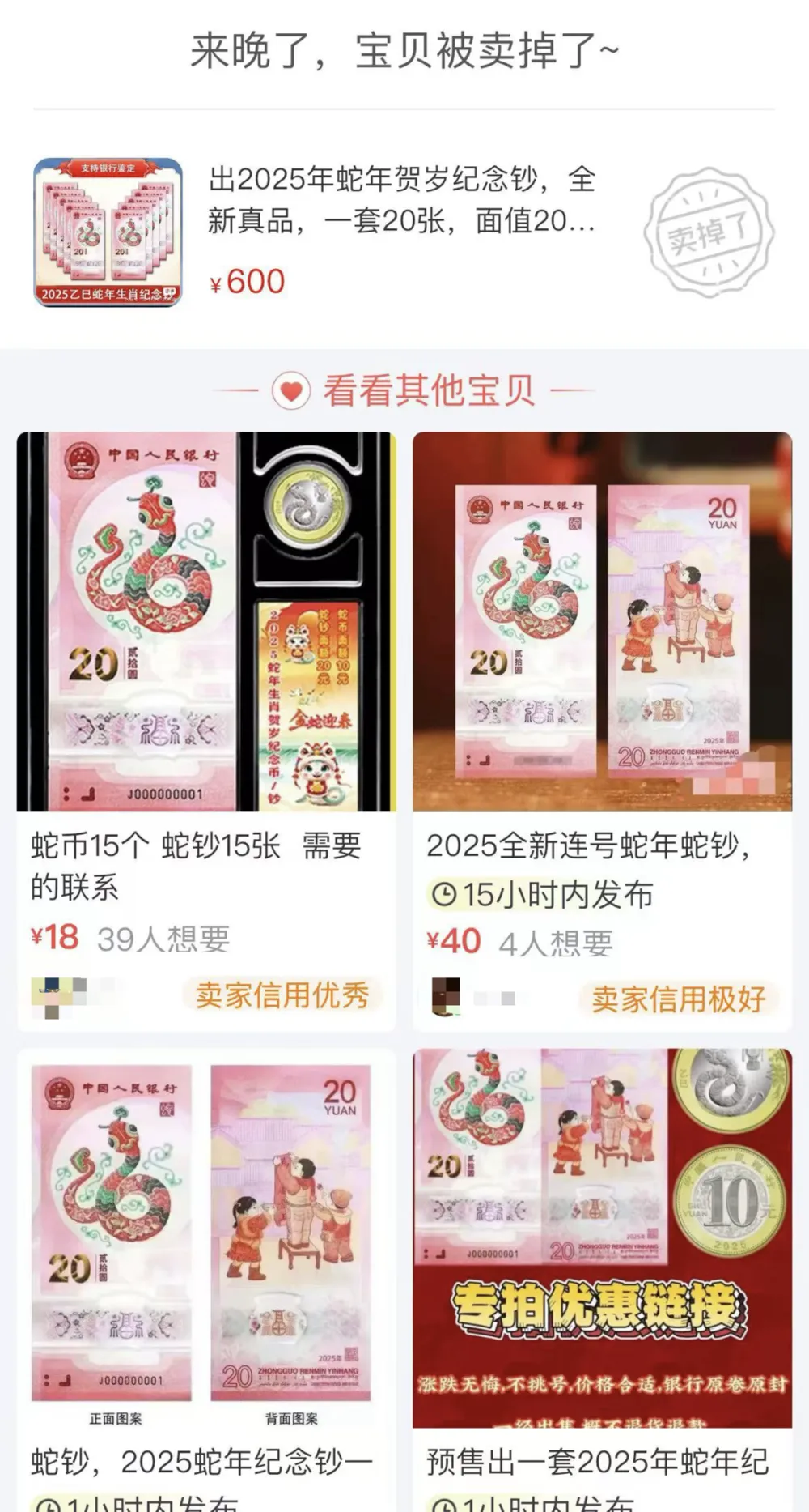 在兑换之前,一些电商网站已开启“蛇币”“蛇钞”预售,和客岁“龙钞”上市时的代价相差不大。此中,20元面额的“蛇钞”报价约40元,尺度十连号的“蛇钞”代价在420元左右。如果为100张连号,俗称“一刀”,代价以致站上了5000元高位,较其面额价上涨150%。 收藏“靓号”也是市场生意业务的卖点,如豹子号(尾号三位雷同)、狮子号(尾号四位雷同)等特别号码非常受接待。 在一个收藏谈天群,多位网民体现要收购。按1月2日上午的报价,蛇币一套20枚(面额200元),“收购价”300元—340元;蛇钞一套20张(面额400元),“收购价”700元—720元,要求连号。 这两年事念币、怀念钞抢购难度陡增,上线即秒空。值得一提的是,大门生群体在这一市场中扮演了主力军脚色。 客岁火爆的“龙钞”吸引了一大波新手藏家。部分币商看中市场热度,为了尽可能多地举行收购,雇佣大门生举行线上预约,之后再低价收购。“龙钞”的强势破圈也动员了此次“蛇钞”的行情。 一些有履历的大门生相识到怀念币钞的运作模式和市场行情后,本年便亲身了局操作,大门生群体的大量涌入则加剧了蛇钞、蛇币的预约难度。 近日,济南长清大学城的一名大二门生对媒体体现,本身班上近半数同砚参与了线上预约,“只要抢到,再转手卖就能赚三四百元,纵然卖不出去也可以去银行兑换现金。” 该门生也体现,如今“蛇钞”的大盘价是43元,四周有同砚喊价50元。原来一些币商是想从大门生手里低价收购,没想到如今形成了“代价拉锯战”的局面。 钱币圈的收藏人士以为,真正的收藏者不会继承超高溢价。蛇年事念币钞后续的走势多半是大门生想变现只能抛售,币商乘隙接盘后代价会有一个小升沉然后趋于平缓。大门生群体的加入确实为钱币圈带来了肯定活力和关注度,但可以预见的是,该群体本身带有“券商”属性,今后的怀念钞可能会越来越难预约。 银行从业职员告诉媒体,从往年中国人民银行发售的差别系列怀念币钞的数量大抵可以大概判定市场行情。比方,2003年羊年发售的首轮生肖怀念币面值1元,发行数量在1000万枚左右,目前市场代价在120元至140元。本年的“蛇钞”“蛇币”各发行一亿枚,其升值空间有限。 (期间财经王晨婷,综合自新黄河、青岛早报、大河报等) |