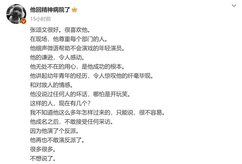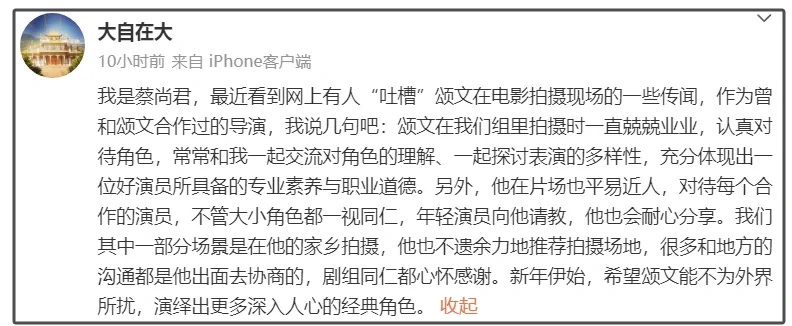 身处舆论漩涡的张颂文,依然没有出往返应。 简朴总结一下近期关于他的负面舆论。先是演员姜尘爆料,称本身被前任家暴,当初向男方学习演出,交了15万的学费,第一天就被挽留住进学生宿舍,晚上就被拍门。背面二人相助演出之后喝醉酒,有了密切行为并开始来往。结果她发现男方和多名女学生有染,大家都以“师徒身份”相称,互相都不知道相互的存在。只管姜尘没有直接点出名字,但说粤语、有过北漂经历、现在以温文尔雅人设自居、家里养猴子等等,都让人指向了张颂文,而且姜尘本身还点赞了推测张颂文名字的批评。 之后舆论升级,有狗仔爆料称张颂文因税务题目被税务部分约谈,文中写的是“现在国家税务部分针对娱乐圈明星的税务稽察工作正在进行之中,张颂文由于存在个人收入与缴税金额不符的环境,前不久已被有关税务部分约谈。”别的,狗仔还透露除了张颂文外,某位一线男星和新晋男星刘学义也被约谈,要求补税。相比私生存的花边消息,涉税的题目相称严肃,一旦被坐实就有被封杀的风险。 然而,两件事、几轮舆论风波张颂文方面从未回应,有媒体透露联系张颂文方面求证,对方也不停没有回应。 一样平常来说,迟迟不回应就会让人以为此中有猫腻,相助方和资方也会心里打鼓,有相助意向也不敢再用,毕竟有肯定风险。然而在张颂文这里刚好反过来了。 一方面,张颂文都不消本身发声,业内偕行纷纷站出来替他语言。 比如相助了《猎冰》的导演高群书,立场刚强的替张颂文语言“张颂文很好。很喜好他。在现场,他恭敬每个部分的人。他细声微语资助不会演戏的年轻演员。他的谦虚,令人感动。”背面还详述了剧中张颂文的乐成筹划。高群书的这段笔墨,除了替张颂文语言,有一点其实非常告急,就是张颂文在现场会资助不会演戏的年轻演员。 这一点,跟过组的就会明确,非常惆怅,百分之九十九的演员都做不到。由于在现场大家都是各司其职,演员也都是看本身的剧本、准备本身的台词。现场引导演员演出这事儿,就连导演都很少干,一样平常的副导演或现场实验导演完成,张颂文在现场能这么做,分析他真的人很善良、夷易近人,很谦虚。而且,肯定是相助的非常愉快,高群书才会如许站出来替他语言。 高群书的这条内容被导演陈国星转发,写的是“时间会验证统统,张颂文值得。“ 别的另有和张颂文相助影戏《日掛中天》的导演蔡尚君,他出往返应是由于有人爆料张颂文在剧组耍大牌,对辛芷蕾欠好。他替张颂文辟谣“拍摄时不停兢兢业业,认真对待脚色,经常和我一起互换对脚色的明确、一起探究演出的多样性,充分体现出一位好演员所具备的专业素养与职业道德。” 无独有偶,蔡尚君也和高群书一样,歌颂张颂文在片场夷易近人,对待每个相助的演员都等量齐观、耐心分享等等。而这一次,张颂文还负担了部分外联制片的工作,帮着导演联系拍摄园地。 别的,演员马钦承、胡雪艺、导演李路等人也都力挺张颂文,为他语言。 这至少分析,张颂文在圈内因缘极好,这归功于他的好品德和谦虚的个性。只不外,所有力挺他的人,其实都是围绕“演戏”这一点,大家的支持还是有所保存的,对于税务题目,没有人提及,肯定也不能说完全信任。 除了业内资助发声,让人以为税务题目也不会给张颂文造成影响的,是大资源腾讯的力挺。 腾讯视频即将启动星光大赏仪式,每一位艺人的邀约肯定都会稽核这个人有没有题目,以及去研判是否有塌房的风险,但凡有题目的肯定就会从名单中剔除。本来在腾讯视频播出的《猎冰》主创肯定是在受邀之列,以是高朋名单上有姚安娜的名字,同时也有张颂文的名字。这分析腾讯没有在乎外界的负面听说,也在旌旗光显的支持张颂文。 但在我看来,越是得到圈内挚友、相助方的支持,张颂文越不应该让人担心、让人扫兴,假如真的私生存没有题目、没有补税,不妨尽快出来否认,给所有人一个交接,这也是艺人应该有的责任吧。 |