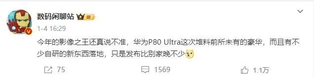 2025年,浩繁超大杯影像旗舰将接连发布,此中华为Pura 80 Ultra备受瞩目。克日,据微博“数码闲聊站”透露,华为这款新旗舰在硬件设置上到达了亘古未有的豪华级别,而且融入了多项华为自研的新技能。 尽管华为Pura 80 Ultra的发布时间相对较晚,但其在影像方面的力气仍让“影像之王”的归属布满牵挂。据悉,该机有望配备5000万像素1英寸可变光圈大底主摄,以及5000万像素1/1.3英寸超大底潜望长焦镜头,这一设置或将使其成为行业潜望长焦镜头的佼佼者。 此外,华为Pura 80 Ultra还将搭载自研的XMAGE影像体系,有望接棒前代成为DXOMARK影像效果榜首的手机。其他设置方面,该机预计将搭载麒麟9020芯片,支持双卫星通讯,并配备新一代玄武钢化昆仑玻璃等。据悉,这款新机将于本年第二季度正式发布,搭载最新的鸿蒙体系。 |