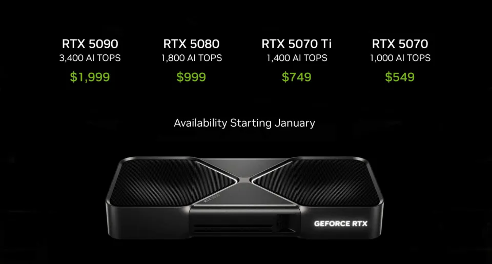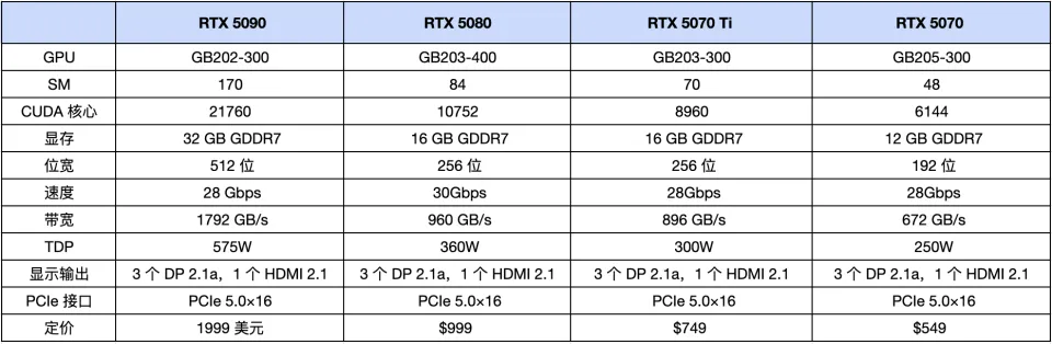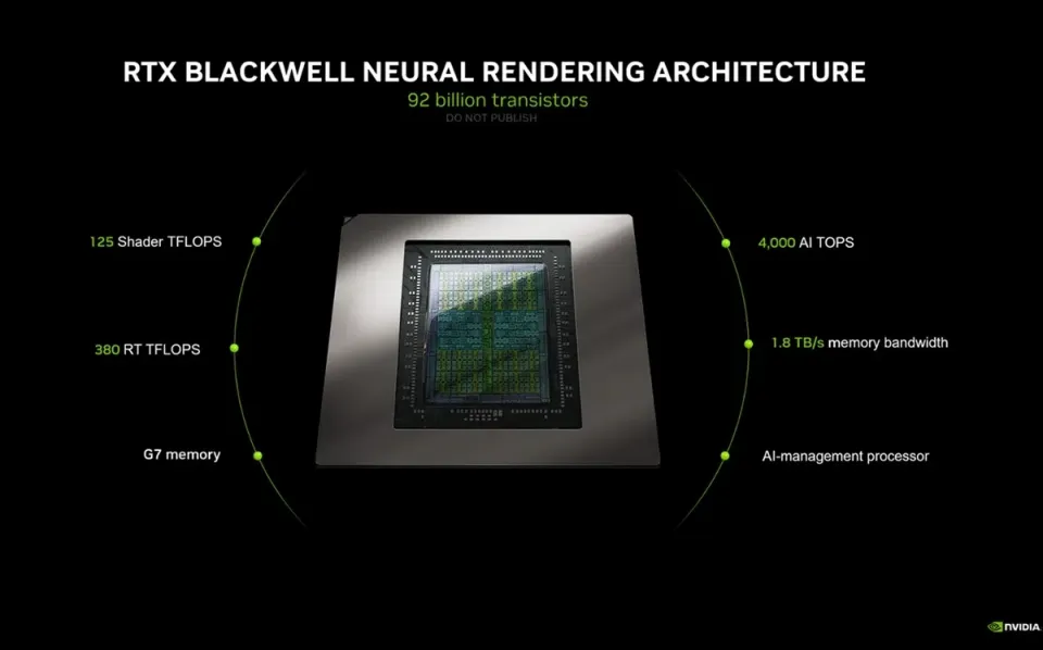 1999美元!英伟达发布年度“神卡”RTX5090 北京时间1月7日,作为本年CES最大的看点之一,英伟达CEO黄仁勋在官方主题演讲上扔出了全新一代GeForce RTX 50系列显卡这颗重磅炸弹。新的50系列显卡依然有“桌面”和“移动”两个版本,四个产物系列,从高到低分别是RTX5090、RTX5080、RTX5070Ti和RTX5070。 定价方面,RTX 5090售价1999 美元(约 14659 元人民币)、RTX 5080售价999 美元(约 7326 元人民币)、RTX 5070Ti售价749 美元(约 5492 元人民币)、RTX 5070售价549 美元(约 4026 元人民币)。 这一代RTX50系列显卡最大的变化来自架构的更新,全新的Blackwell架构初次出现在消耗级显卡上。 作为现在处理处罚能力最强的GPU,RTX 5090 拥有920亿个晶体管,提供每秒凌驾3352万亿次(TOPS) 的计算能力,配备32GB GDDR7、1792GB/秒的内存带宽和 21760 个CUDA焦点,这也是首个突破20000万CUDA大关的消耗级显卡,而它的TDP高达575W。 英伟达官方给出的数据表现,得益于DLSS 4技能和Blackwell架构,这款GPU的速率将是RTX 4090的两倍。 英伟达演示了一段《赛博朋克2077》的游戏对比动画,在启用完备光追技能的环境下,配备DLSS 4技能的RTX 5090上,这款游戏可以以238fps的画面革新率运行,而配备DLSS 3.5的RTX 4090上只能以106fps的革新率运行。 RTX 5080的设计速率是RTX 4080的两倍,将配备16GB GDDR7内存、960GB/秒的内存带宽和10752 个CUDA 焦点。 英伟达还推出了RTX 5070 Ti和RTX 5070两款面向中端市场的GPU。RTX 5070 Ti配备16GB GDDR7内存,内存带宽为896GB/秒,拥有8960个CUDA焦点。RTX 5070配备12GB GDDR7,内存带宽为672 GB/秒,拥有6144个CUDA焦点。英伟达官方表现,RTX 5070 Ti和5070的速率将分别是RTX 4070Ti和4070的两倍。 除了桌面端之外,英伟达还发布了RTX 50系列的移动版,配备RTX 5090的条记本电脑初次配备拥有24GB GDDR7显存。 RTX 5080 GPU将配备16GB GDDR7显存,RTX 5070 Ti 将配备 12GB GDDR7显存,RTX 5070 仅配备 8GB GDDR7显存。 定价方面,英伟达提供了整机的参考定位,RTX 5070条记本定价1299美元(约9520元人民币) RTX 5070 Ti条记本定价1599美元(约11719元人民币) RTX 5080条记本定价2199美元(约16116元人民币) RTX 5090条记本定价2899美元(约21247元人民币)。(腾讯科技特约作者 吴彬) |