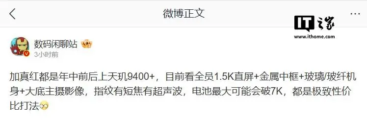 IT之家 1 月 7 日消息,今日数码博主 @数码闲聊站 透露,一加、真我和 REDMI 都筹划在年中前后推出搭载联发科天玑 9400 + 处置惩罚器的新机型。 据其透露,这些即将上市的新机在设置上都颇具亮点。屏幕方面,将采取 1.5K 分辨率的直屏筹划。机身筹划上,将采取金属中框搭配玻璃或玻纤材质后盖。影像方面,新机将主打大底主摄。指纹识别方案则包括短焦和超声波两种,更令人惊喜的是,这些新机的电池容量有望突破 7000mAh。该博主称,这些新机“都是极致性价比的打法”。 从定名来看,天玑 9400 + 将是天玑 9400 的小幅升级版,会一连了全大核架构筹划,在 CPU 主频上举行提升。据IT之家了解,天玑 9400 采取了 ARM v9 最新的 Blackhawk 黑鹰架构,其 CPU 由一颗 3.626GHz 的 Cortex-X925 超大核、三颗 3.3GHz 的 Cortex-X4 大核以及四颗 2.4GHz 的 Cortex-A720 大核组成,GPU 则为 Mali-G925-Immortalis MC12。作为升级版,天玑 9400 + 的 CPU 频率预计将凌驾 3.626GHz。 除了 REDMI、真我和一加,vivo X200S、OPPO Find X8S 等机型也会搭载天玑 9400+。 |