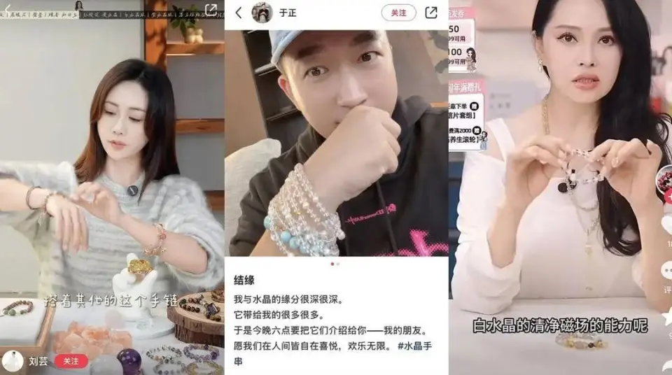 从去年底开始,水晶手串出现在伊能静、徐艺洋等不少明星的直播间中,在机密的风格和疗愈的氛围下,水晶手串上架即断货。不少从业者告诉记者,明星这波下场让水晶的热度敏捷攀升,00后女孩莎莎(化名)也感受到这个行业越来越火,在线上卖水晶手串一年多,她已劳绩了自己人生第一个50万。