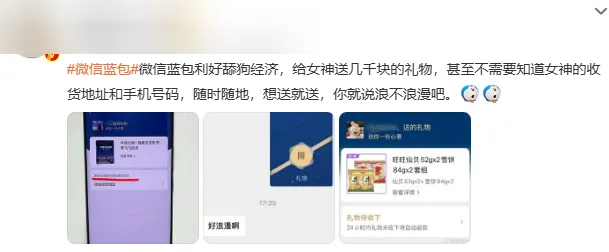 照旧说互联网厂商们,太懂得如本年轻人们的交际礼仪。 机哥发现好几个大厂App,迩来都悄咪咪推出了「送礼品」功能。 起初是微信在12月份,推出了区别于平凡红包和转账的「微信蓝包」。 和真金白银的现金活动差别。 这微信蓝包,须要咱们先在微信小店找到想送的东西,再找到底部的【送朋侪】按钮,选择须要赠送的挚友。 整个收礼品过程,被赠送方不消付出一分钱,也不消给对方发收货地点、身份信息。 用户可以购买暖锅和电影等团购套餐,赠送给亲朋挚友。 再到2024年年底,抖音又进一步完满了这功能。 掏钱下单后,咱们可以把买好的团购商品,以红包情势发给挚友。 在微信和抖音都把商品“礼品化”之后。 这下好了。 着实从厂商的角度来看。 它们推出类似于发红包的「送礼品」功能,无非是想把交际电商给捣鼓起来。 前有微信红包,直接带飞微信付出。 今又有微信蓝包,想要复刻当年勇。 不过有一说一。 那是不是意味着,微信、抖音和淘宝这三个App的送礼功能,最终的归宿是摆设吃灰呢? 起初我也以为是如许。 现在「送礼」受到广泛认同的一大场景,便是—— 利好舔狗经济 代入想象一下,我是一名舔狗,但我的女神并不喜好我,只想要用最低的成本狠狠圈我的钱。 那么标题来了。 我给女神发红包,最大限额200元,女神表现非常不满足。 我给女神转账,她又会担心我魂魄觉醒,一气之下找回大部分转账数额。 要是女神哪天想要贵重礼品,还得发自家收货地点和手机号码。 那不纯纯隐私泄漏? 可「送礼品」功能出来后,一切都变了。 只要商品原价不高于1万块钱,怎么送都行,赠送方看不到收货人的地点。 舔狗可以借着送礼品的名义,肆无顾忌地给女神咔咔烧钱。 捞女也能通过这功能,安全无风险地把礼品拿得手。 乃至在点击【填下地点并收下】的按钮后,女神还能通过送礼页面看到商品的价格、特性和配置等详细环境。 要是舔狗痛恨了,想要回本身送出去的东西? 而且官方阐明都写得很清楚—— “一旦送出礼品,岂论朋侪是否收下礼品,赠送方都无法主动取消订单。” “200元的红包已逾期,1万元的礼品才真实。” 固然,以上只是机哥的假设情形。
