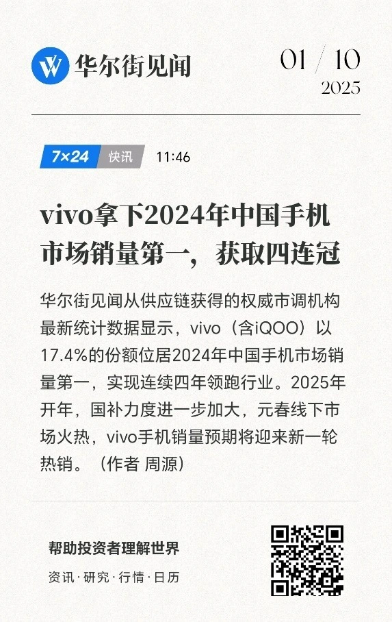 据权势巨子市调机构数据,2024年整年,vivo(含iQOO)以17.4%的份额拿下中国手机市场销量冠军,成为国内市场首个销量“四连冠”的品牌。这不但展现出国产品牌在全价位段市场中的竞争力正日益增强,也表明vivo在领先技能方向上的坚持发力得到成效,手机市场引领者的地位进一步得到巩固,市场竞争力连续提拔。 vivo的亮眼效果离不开产品的连续创新。回首2024年,vivo相继推出X Fold3系列、X200系列、S20系列以及Y300系列等备受瞩目的产品。同时,其子品牌iQOO也带来了Neo10系列、Z9系列、13系列等多款新品。这些覆盖各细分市场的良好产品,不但为vivo带来了口碑与销量的双丰收,也为整年的市场体现构筑起稳固的基石,助力vivo摘取整年销量桂冠。 其中,vivo X200系列作为vivo高端旗舰的又一力作,无论是产品体现照旧品牌体现,均得到巨大乐成。不绝以来,X系列都承载着vivo对手机产业最前沿的软硬件技能探索效果。通过在计划、影像、性能、体系四条长赛道上的连续突破,X系列已经在用户心目中立下了坚固的高端旗舰口碑,成为vivo品牌增长的紧张推动力。而在2024年10月发布的vivo X200系列,更是以“一超多能”的杰出体现乐成继承住了高端市场的考验:不但采取蔡司2亿APO超等长焦、蓝图x索尼LYT-818主摄传感器等顶级影像设置,还搭载第二代全大核3nm天玑9400、环球首发公里级无网通讯、推出能量密度更高的第三代硅负极电池技能等,实现性能、通讯、续航等“多能”体验的全面飞跃。 同时,依附着杰出的产品力,vivo X200系列自觉布起就备受业界关注,不但在手机市场取得了骄人效果,还得到了多项重量级奖项的承认。其中包括人民网2024年人民匠心品牌宣传展示“匠心产品”奖、环球网2024环球趋势案例“年度科技创新良好案例”等。而vivo X200 Pro作为系列中产品力最强的代表,更是斩获了网易将来大会2024将来创新奖“年度最佳旗舰手机产品”、微博年度数码大赏“微博年度人气高端旗舰手机”等多个奖项,并被外洋着名科技博主Mrwhosetheboss评为“年度最佳旗舰手机”。 除了产品力的极致体现和市场的承认,vivo在科技创新方面也不绝取得突破。vivo蓝科技作为vivo的焦点竞争力之一,正在不绝进化,为vivo的产品创新提供强有力的支持。2023年,vivo依托多年自研技能积聚,推出技能品牌“蓝科技”,包括蓝晶芯片技能栈、蓝图影像、蓝海续航体系、蓝心大模子、蓝河利用体系五大板块,在芯片、影像、续航、AI技能等多维度投入自研,并携手环球顶尖供应链互助伙伴深度共研,构筑起技能上风。而在vivo X200系列上,“蓝科技”又一次完成集结,以科技的高度与温度不绝赋能vivo高端突破,让vivo一以贯之的用户导向型创新理念排泄到各个方面,以科技创新为人们带去精美生存体验。首发“公里级无网通讯”功能满意用户在无网情况下的沟通需求,“vivo瞥见”办理障碍人群生存中的州?未便等等办法,无不体现vivo蓝科技以用户为中心、为用户创造代价的理念。 vivo连续四年市场销量第一的背后,不但仅是好产品的乐成,更是科技创新和用户导向型理念的乐成。“一年之计在于春”,随着2025年开年国家补贴政策力度的进一步加大,手机市场或将率先迎来新一轮的热销季,这也让vivo在2025年的全新体现同样值得等待。 |