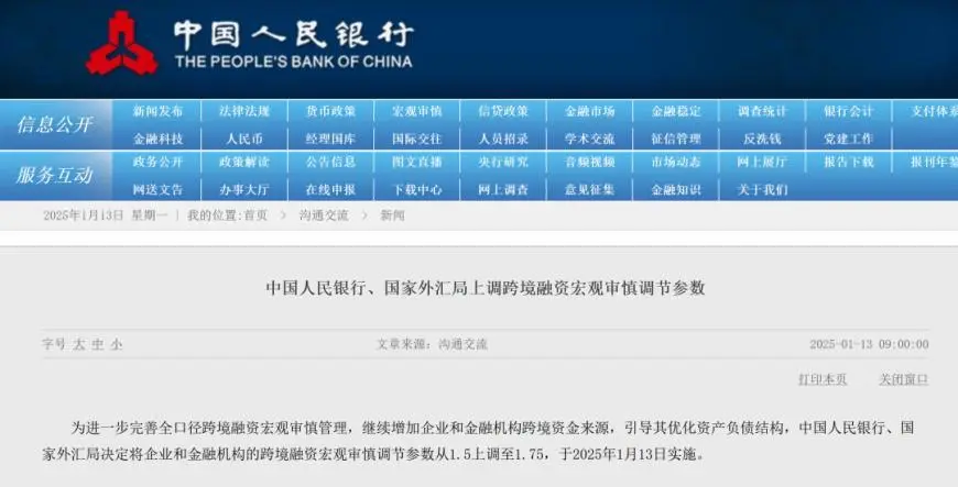 稳汇率信号一连开释! 1月13日,据央行网站消息,为进一步完满全口径跨境融资宏观审慎管理,继续增长企业和金融机构跨境资金泉源,引导其优化资产负债布局,中国人民银行、国家外汇局决定将企业和金融机构的跨境融资宏观审慎调治参数从1.5上调至1.75,于2025年1月13日实行。 央行网站截图 与此同时,中国外汇市场引导委员会集会在京召开。集会夸大,要刚强不移保持人民币汇率在公道平衡程度上的根本稳固。人民银行、外汇局将继续综合施策,稳固预期,增强外汇市场韧性,增强外汇市场管理,果断对市场顺周期举动进行纠偏,果断对扰乱市场秩序举动进行处理,果断防范汇率超调风险。 开释稳汇率清楚政策信号 近期人民币波动幅度有所加大,其中,1月3日在岸人民币兑美元跌破7.3,并在随后突破7.33,离岸代价更是一度跌破7.36,引发市场关注。 东方金诚指出,上调企业和金融机构的跨境融资宏观审慎调治参数,可以大概增长企业和金融机构跨境资金泉源,进而增长境内美元运动性,缓解汇市美元供求偏紧状态;更紧张的是,这是既上周四(1月9日)央行决定在香港市场大规模发行600元央票之后,羁系层在较短时间内再度开释稳汇率的清楚政策信号,旨在防范短期内人民币贬值预期过分聚集,维护汇市稳固运行。 东方金诚夸大,近期稳汇市政策工具频出,与央行近期再度夸大“三个果断”,即“果断对扰乱市场秩序举动进行处理,果断防止形成单边同等性预期并自我实现,果断防范汇率超调风险”一起,转达了更加明确有力的稳汇率政策态度。 究竟上,央行和外汇局此前曾通过调解企业和金融机构的跨境融资宏观审慎调治参数,对汇市实行调控:2021年1月,为控制人民币过快升值,跨境融资宏观审慎调治参数由1.25下调至1;2022年10月和2023年7月,为控制人民币过快贬值,跨境融资宏观审慎调治参数分别上调0.25至1.5。 离岸人民币涨超100点 受到利好消息影响,人民币走强。中国外汇生意业务中央体现,2025年开年第一周,人民币中央价根本稳固在7.1878左右,1月13日,人民币兑美元中央价报7.1885,上调6点;上一生意业务日中央价7.1891,上一生意业务日官方收盘价7.3326,上日夜盘报收7.3327。 停止10:21,离岸人民币对美元短线走高超100点,报7.3525。 本年人民币汇率怎么走? 东方金诚分析近期人民币贬值有两个原因:一是美国新政府即将上台,市场对美国针对欧盟加征关税的担心在加剧,加之市场对2025年美联储降息的预期也在降温,都在近期推动推动美元指数一连波动上行,给人民币带来肯定被动贬值动能。 二是1月3日美元回调过程中,人民币贬值动能有所开释。这一方面可以克制贬值动能过分累积,同时也体现7.3并非必须坚守的关口,人民币会根据全球外汇市场走势,择机适度开释贬值压力。“在近期国内经济根本面较为稳固的配景下,美元指数波动成为牵动人民币汇率走势的紧张因素。” 东方金诚判定,着眼于有效应对外部经贸情况厘革,2025年人民币汇率弹性趋于加大,贬值容忍度也会有所进步,但会继续围绕公道平衡程度双向波动。就短期而言,思量到美元还有大概强势运行一段时间,人民币在跌破7.3后或还有肯定下行空间,但汇市风险不大,特别是在体现人民币实际汇率程度的CFETS等三大一篮子人民币汇率指数一连处于稳中有升的偏强状态的配景下。 重阳投资指出,人民币只管对美元贬值,但相较其他非美钱币贬值幅度更小,因此对一篮子钱币是一连升值的。根据外汇生意业务中央设定的CFETS篮子,2024年四序度以来人民币汇率指数的升值幅度在3.5-3.8%之间。该机构表示,前瞻地看人民币汇率指数有望保持稳固,对美元汇率的走势很大程度上取决于特朗普政府的关税政策。假如中国输美商品关税进一步上调,人民币对美元适度贬值实际上可以更好地发挥汇率的主动稳固器作用,对冲加税带来的负面影响。 上周五《证券时报》发文指出,央行稳汇率不是让人民币兑美元汇率固守某一点位,而是更看重汇率预期、市场结售汇生意业务的安稳有序。随着企业等外汇市场主体对汇率波动认识的加深,加上央行已往多年在稳固汇率预期方面积累了成熟履历和市场信誉,市场对于汇率短期突破某一点位也徐徐“脱敏”,汇率弹性加大的同时市场预期的波动却在变小。只管外部经贸情况是本年影响人民币兑美元汇率走势的关键变量,但思量到经常账户仍有望保持顺差、企业汇率风险管理意识和手段愈发成熟,更为紧张的是,影响汇率的决定性变量是国内经济发展动能,宏观政策更加给力,及时推出有含金量的务实办法,人民币汇率有望总体保持稳固。 东方金诚指出,假如未来出现人民币汇率背离根本面的急涨急跌情况,羁系层稳汇市工具还会及时脱手。除了强化在岸市场人民币中央价调控、适度调治离岸市场人民币运动性、上调企业和金融机构的跨境融资宏观审慎调治参数之外,还可择机动用下调境内企业境外放款的宏观审慎调治系数(控制资源外流)、下调外汇存款准备金率(在境内开释更多美元运动性)、下调境内美元存款利率(克制境内购汇需求)、上调远期售汇风险准备金率(克制境内购汇需求)等政策工具。历史表明,这些政策工具可以大概起到有效引导市场预期,防范汇率超调风险的作用。 |