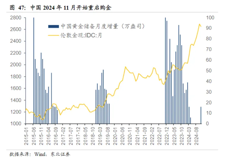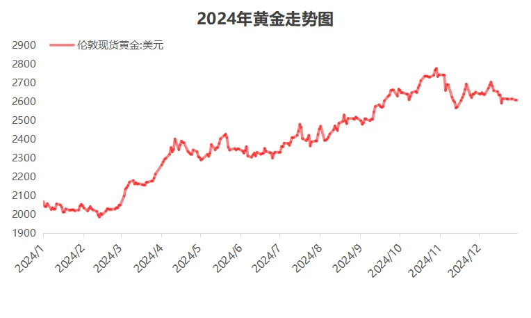 | 2024年,股市是“披着牛皮的熊”,若没有924行情的暴力拉升,终究是绿肥红瘦。伦敦黄金现货价格、COMEX黄金期货价格收盘价分别为2624.16美元/盎司、2639.3美元/盎司,年度涨幅分别为27.23%、27.39%,均创下2010年以来最大年度涨幅。账户里没配黄金ETF的,只能扶着墙咬牙说“没关系,我很好”;纵使钝感掉金融市场的波动,陪女友、闺蜜去金店逛过的,同样让人感到“心梗”,笔者咨询了金店后相识到,现在计价黄金已经到达750元/克起,工费另计。1月7月,央行“官方储备资产”数据表现,2024年12月末我国黄金储备7329万盎司,较11月末的7296万盎司增长33万盎司。自一连6个月停息增持黄金后,央行从客岁11月开始,已经一连两个月增持。要说金价现在也不自制,央妈缘何还一连脱手增持?在金价高企的当下,后续是否还有行情?现在设置黄金还来得及吗?