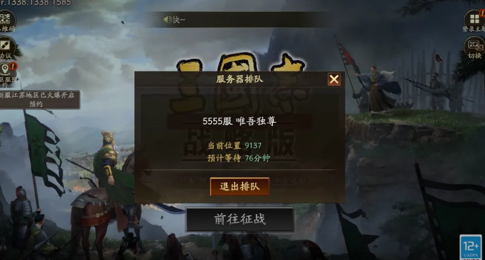 精确来说,这应该是三国志战略版的第六年了!新年首个豹子区,就是开了个好头,5555服——唯吾独尊。我从早上11点开始断断续续列队,晚上再看当前位置9000+,列队76分钟。电脑没关,不绝等了76分钟!四州爆满+二拥挤