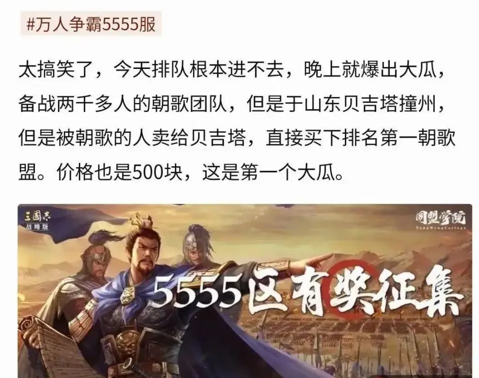 山东爆出的瓜也很大,当天晚上就2000人备战的朝歌团队,据说落州当日就被卖盟了。贝吉塔以500的代价拿下排名第一的超等大盟盟壳。