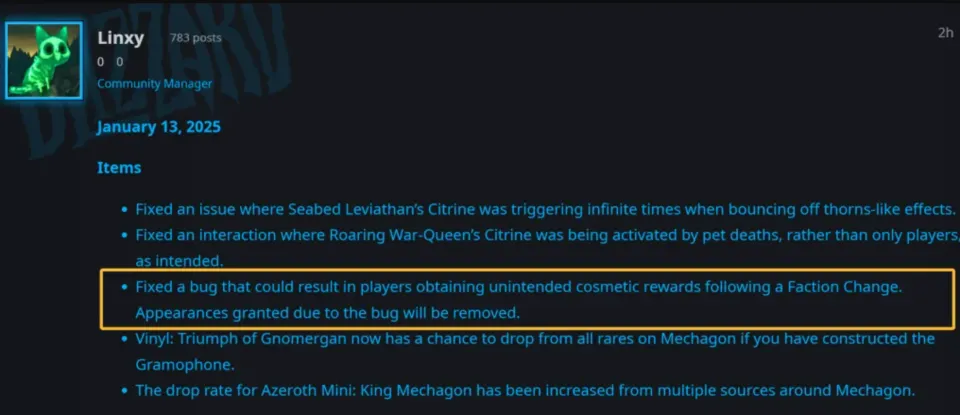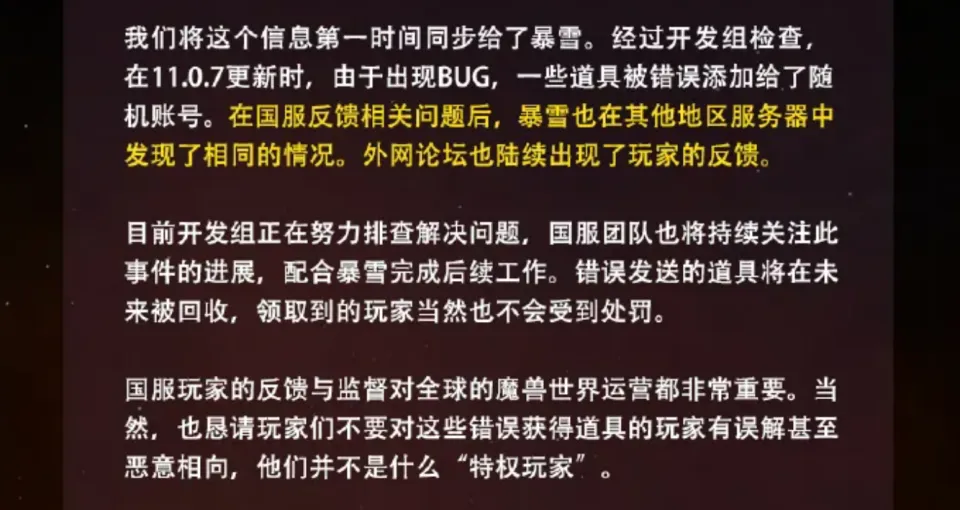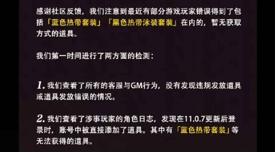 不知道玩家们还记得不记得之前的一个事故,这个事故在国服着实闹了很久,乃至很多玩家们都知道网易的内部职员大概使用特权来违规给自己的脚色增长一些装备和道具,所以玩家们直接开始举行冲魔兽天下官方,但是随着正式回应这件事变之后,玩家们不光没有息怒,反而愈演愈烈乃至直接实锤了是官方的骚操作,不过随着暴雪的蓝贴,国服终于沉冤得雪。 这个事变很奇怪,乃至没有说的清晰到底是怎样发生的,因由是玩家们发现魔兽天下正式服游戏中的时间观光者和权贵这两个ID的玩家们身上出现了一个从来没有在游戏中出现的幻化,而这个幻化就是蓝色的泳衣,因此很多人就觉得是不是暴雪或者是网易亦或者是雷火工作室中有人使用特权来获取游戏中没有出现的幻化套装。 乃至不少人直接觉得就是官方给内部玩家夺取的特权,所以一段时间内各人疯狂的举行攻击官方账号,不过也有部门玩家们以为这两个ID会不会是官方玩家,告急是在游戏中测试幻化只是忘记了匿伏。不过之后官方立刻开启了调查,并且官方直接回应并没有违法发放或者是错误发放道具,并且官方也表现查阅日记后发现该泳衣是直接被添加上去的,换句话说上号就送泳衣。 在调查这件事变的时候网易也将信息同步给了暴雪,并且开发组也开启调查,终极的调查结果便是游戏在更新过程中才在了bug,并且这个bug并非国服专属bug,外网论坛中也有大量的玩家们出现了同样的bug,也有大量的玩家们举行反馈了这件事变,并且官方还表现领取到的玩家们不会受到任何的处罚,那么玩家们信吗? 那么玩家们信吗?很明显玩家们根本不信,大量的玩家们疯狂在这条公告的底部举行喷魔兽天下官方,乃至另有人给相识决方案,让官方直接随机发放该泳衣,等他们去论坛中发帖扣问的时候再采取返来。而这段时间农工着实不停在查阅暴雪的蓝贴,但是不停没有比及蓝贴,所以就不举行跟进这件事变,究竟我们也难以猜到原因,纵然真的是内部玩家我们又能怎么办对吧? 不过很多玩家们似乎发现了一个共同的题目便是这些玩家们都购买过转种族或者转阵营服务器等服务,所以这个bug很大概是绑定在这些服务上或者是由于这些服务出现了题目所以导致了不过,才导致了这些泳衣的出现。但是纵然是bug也证明确一件事变,游戏中存在这些东西,那么将来的某一天会不会将这些东西放出来呢? 不过到了本日魔兽天下国服终于沉冤得雪了,暴雪官方承认了这个bug,并且给予修复了,只是暴雪没有承认的这段时间内,国服被玩家们攻击太多太多了。不过对于大部门的攻击过国服的玩家们来说,着实原形是什么并不告急,只是探求到一个突破口去骂运营而已,无论游戏怎么做都会有人骂,所以这个bug存在与否并不是那么告急。 所以从目前来看这只是一个平常的bug,但是农工不明确的是一个平常的bug居然耗费了云云久的时间才办理。不过除了bug以外农工着实还好奇一件事变,既然由于bug出现了泳衣,那么将来版本中不如直接将泳衣迭代到游戏中,究竟泳衣不大概凭空出现,很大概只是之前已经预设在游戏中,没有上线的东西,所以不如直接拿出来上线。 |